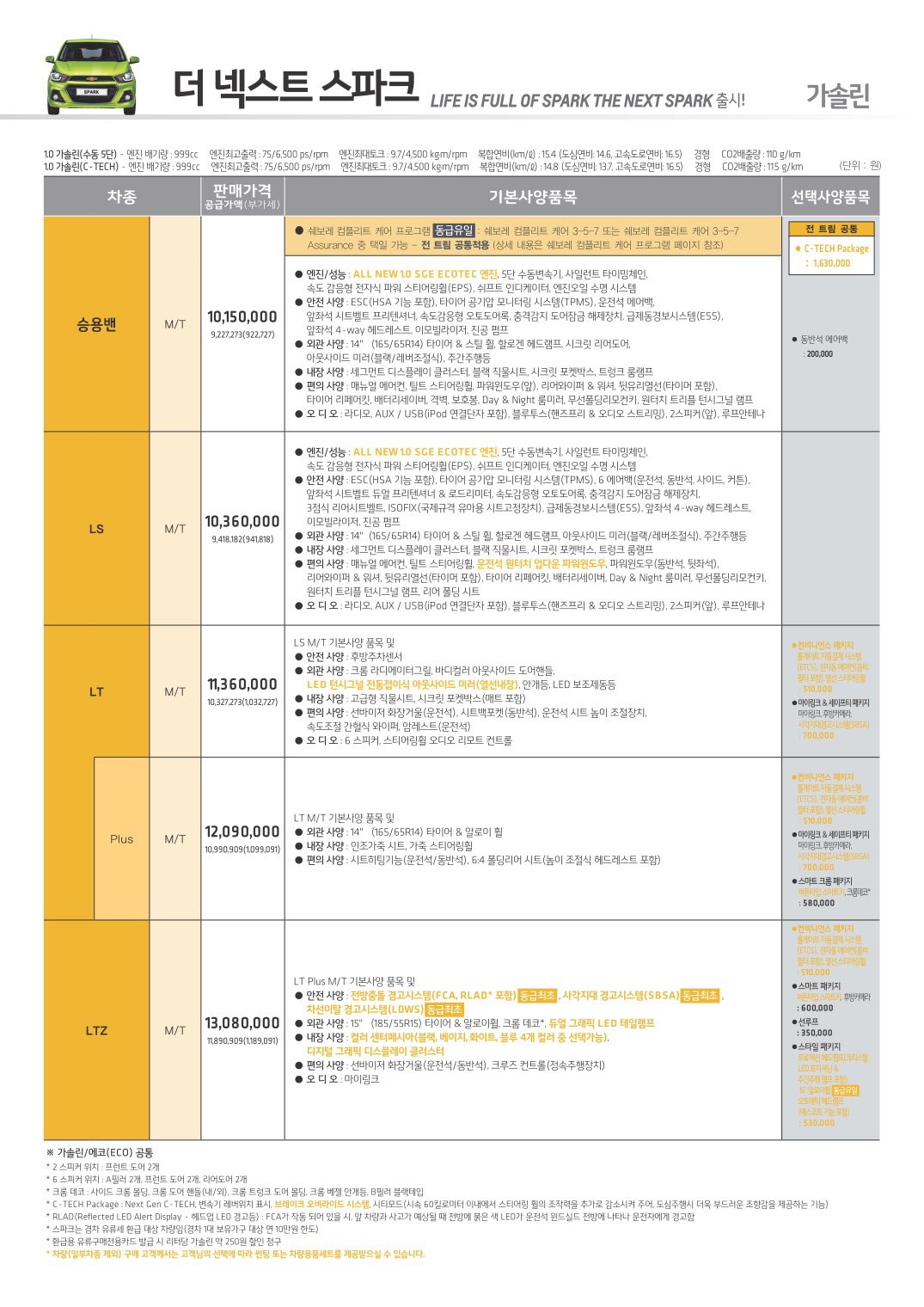 2015년 1월 스파크 신차가격표 / 스파크전기차EV 신차가격표