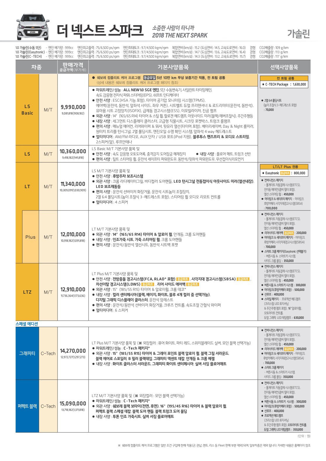 2018년 7월 스파크 신차가격표
