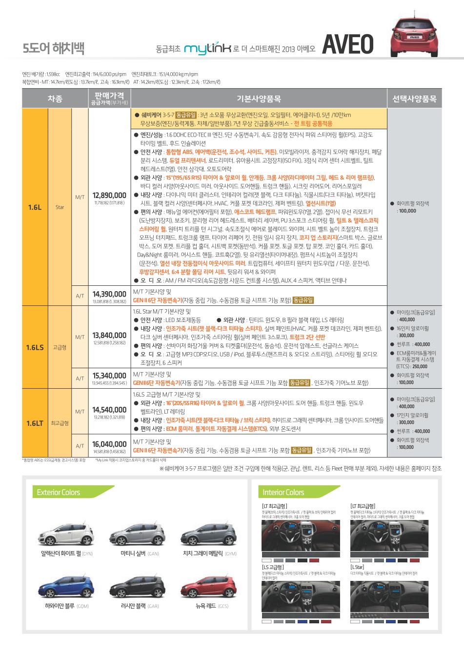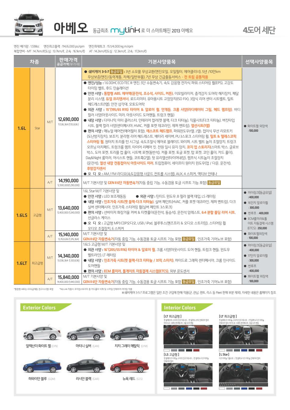 2013년 6월 아베오 신차가격표