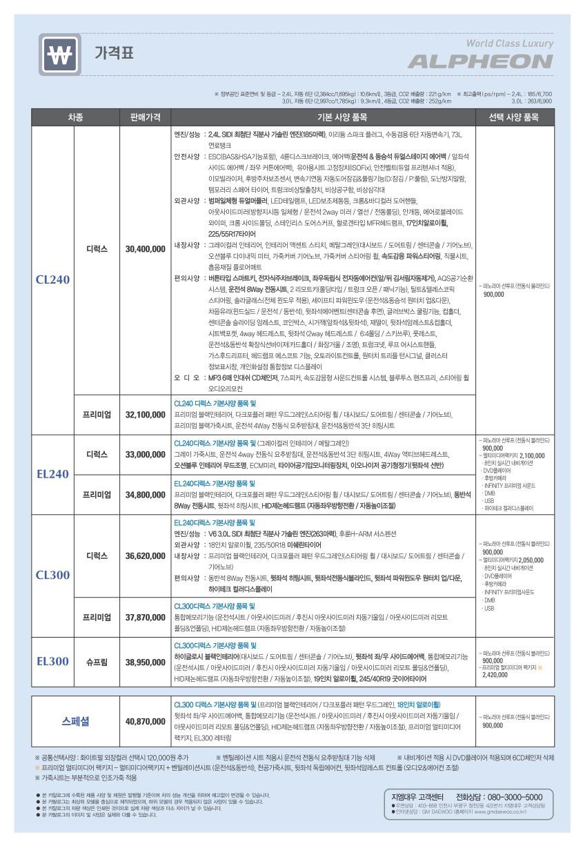 ※ 본 가격표의 모든 저작권은 해당 차량 제조사에 있습니다.