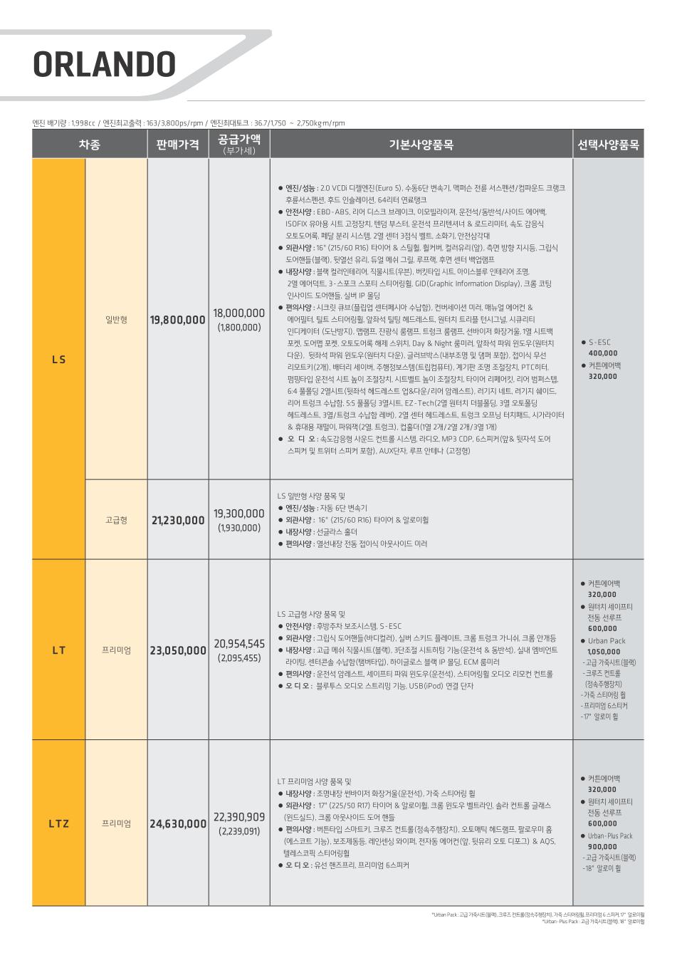 2011년 3월 올란도 신차가격표