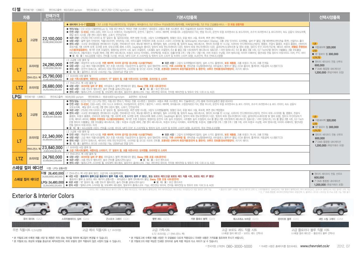 2012년 7월 올란도 신차가격표
