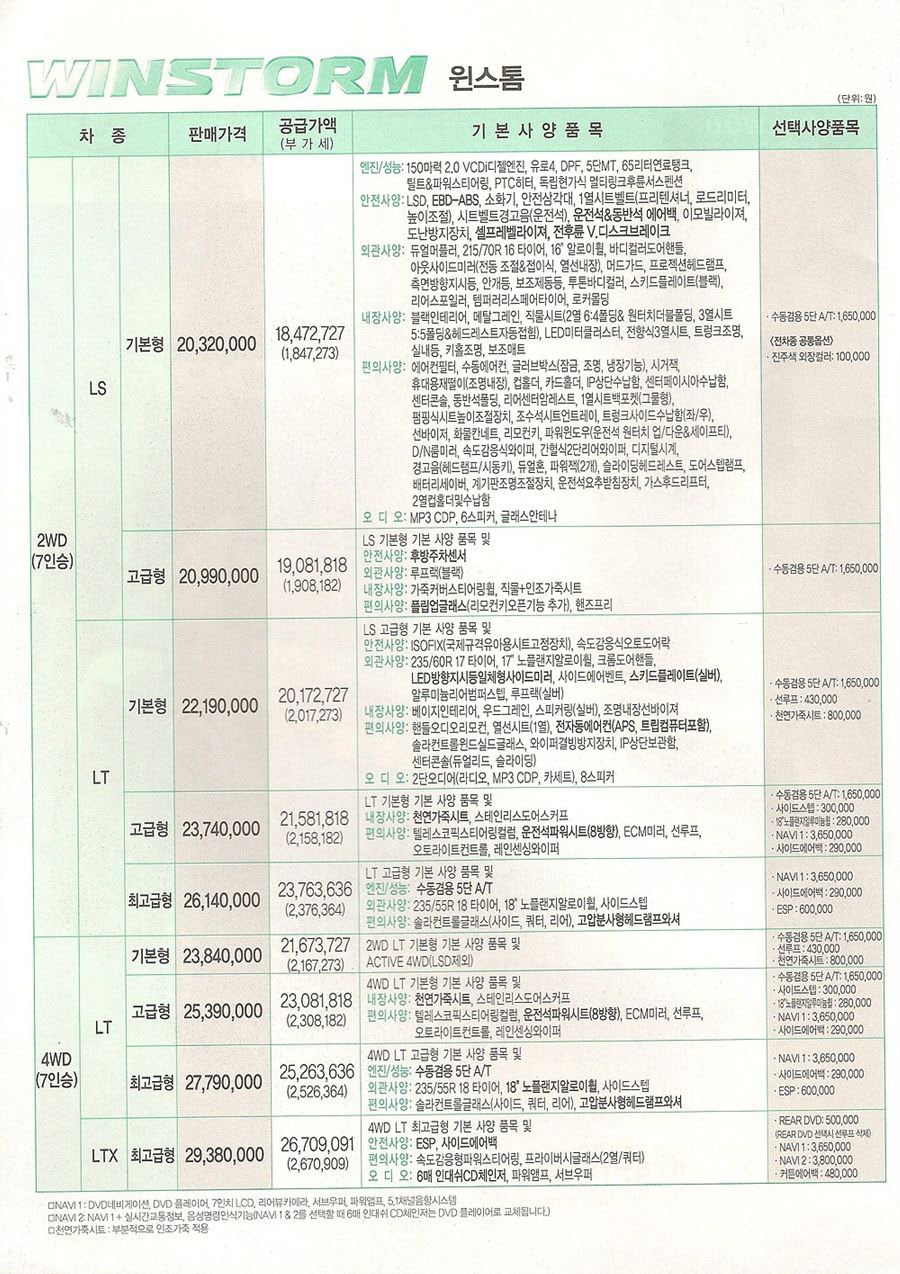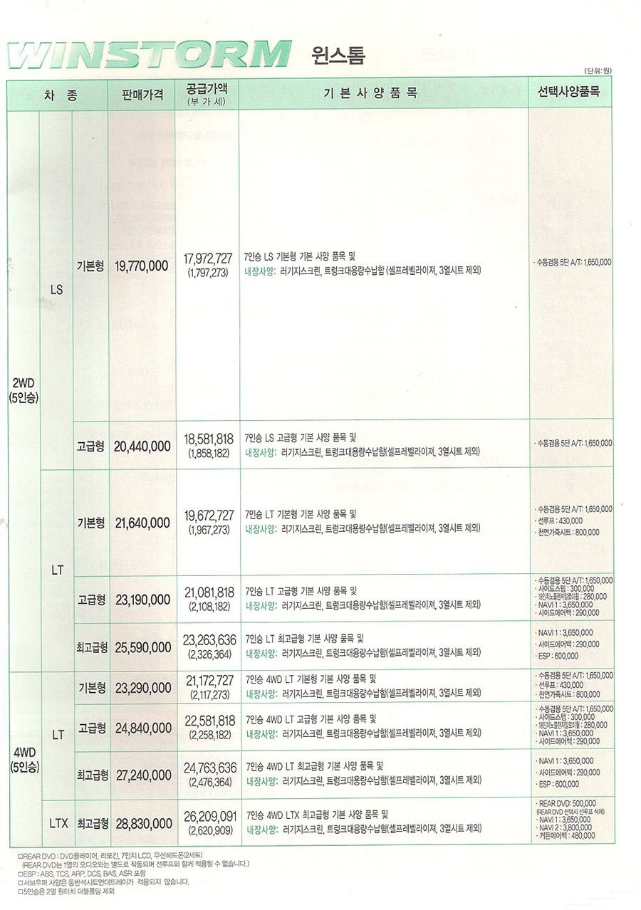 2007년 5월 윈스톰 신차가격표