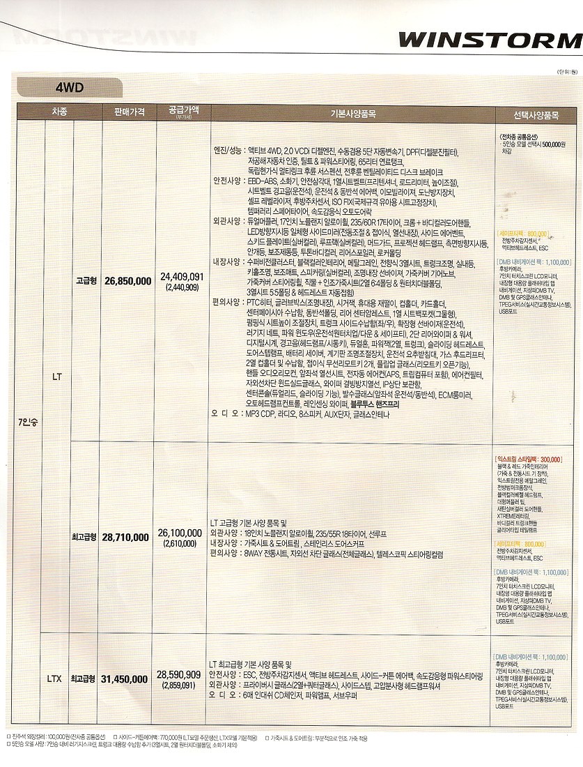 2010년 7월 윈스톰 신차가격표