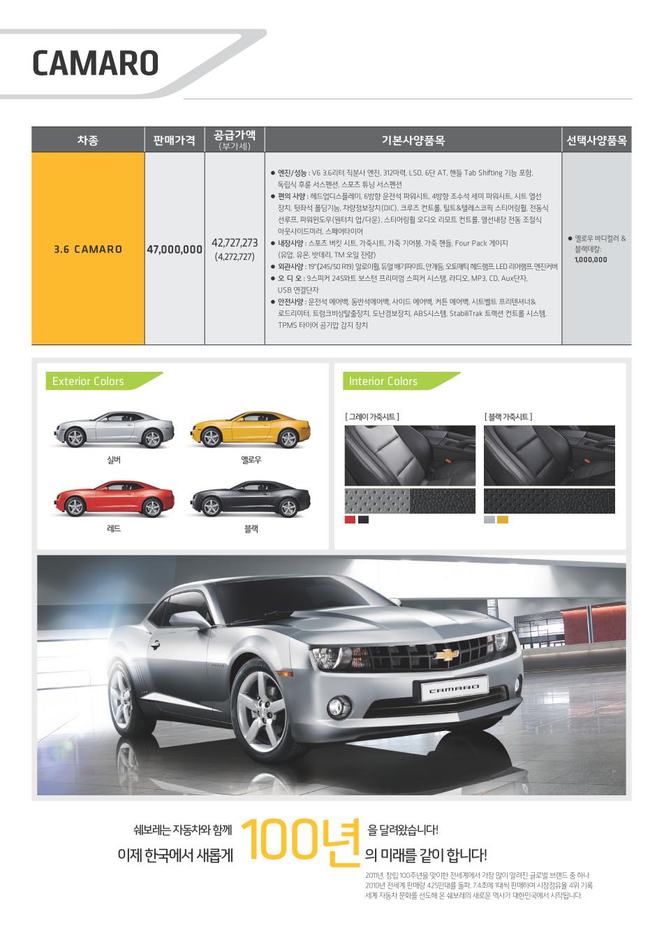 2011년 3월 카마로 신차가격표