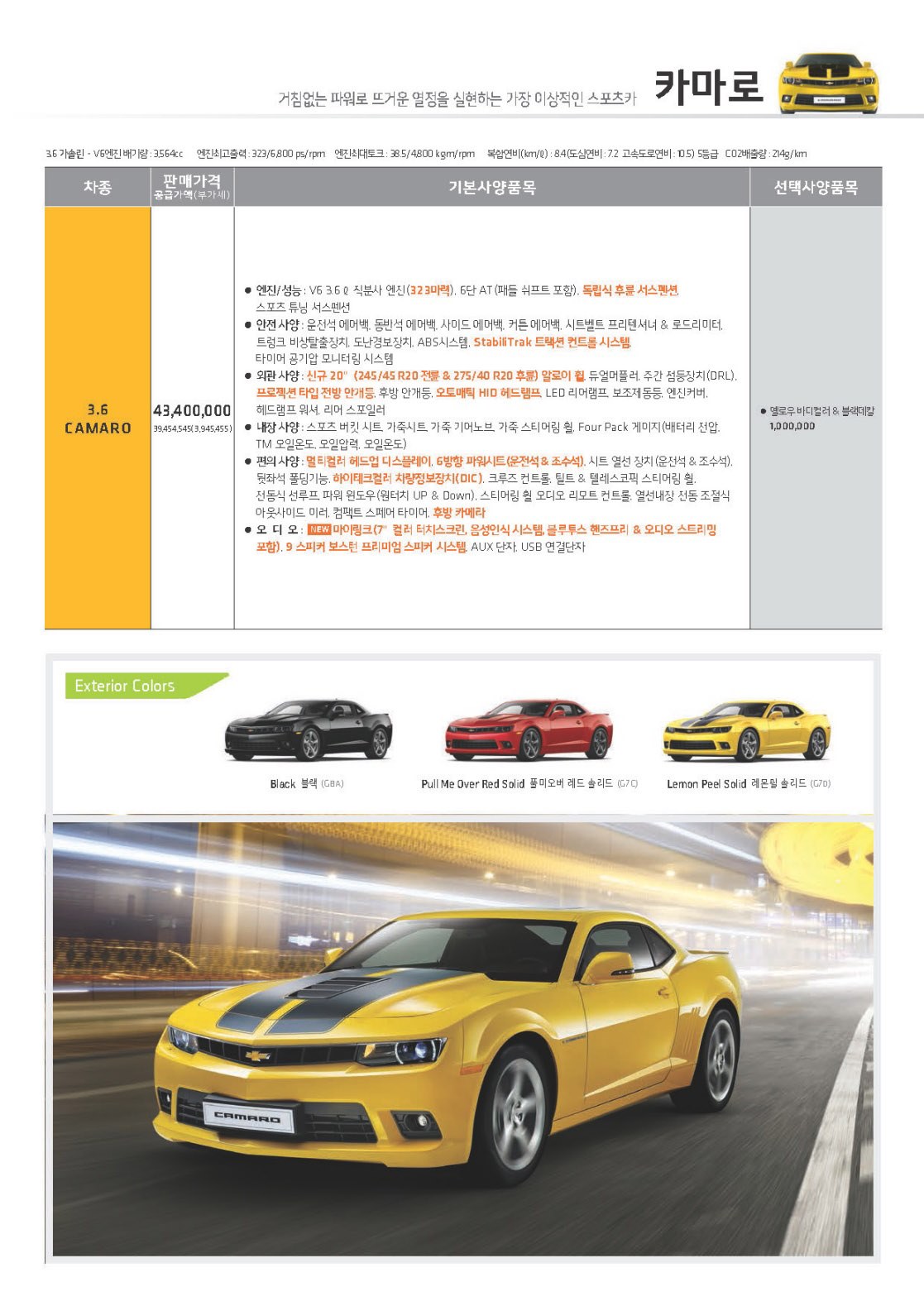2015년 1월 카마로 신차가격표