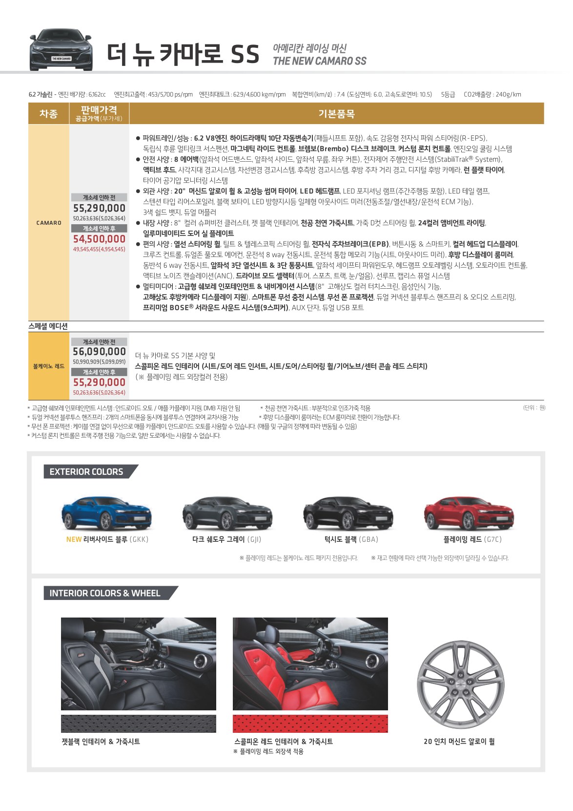 2019년 8월 카마로 가격표