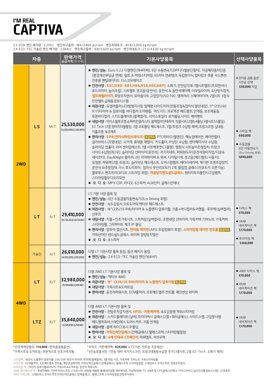 2011년 9월 캡티바 신차가격표
