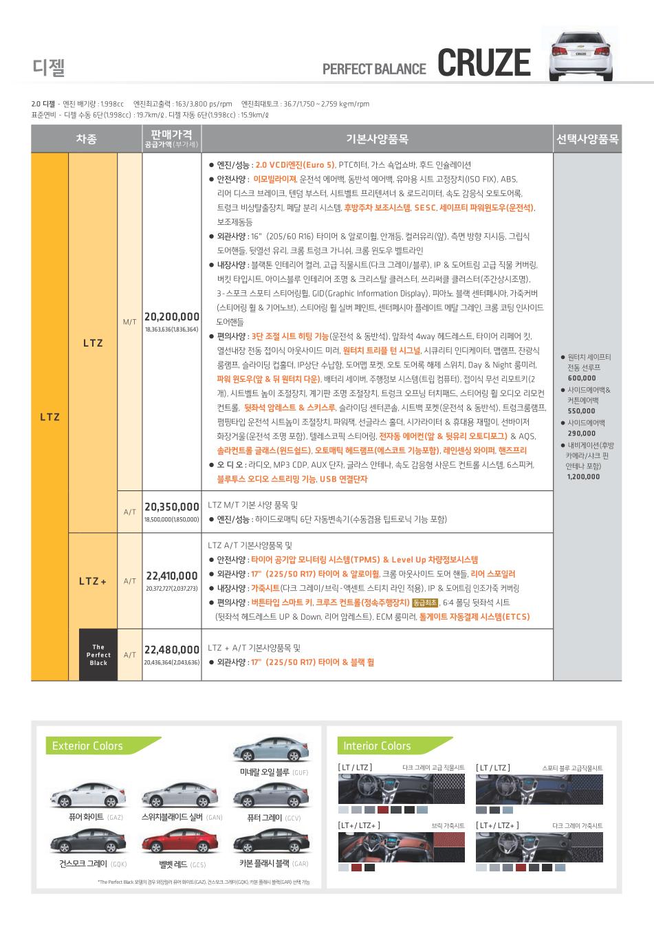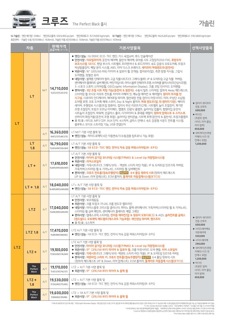 2012년 2월 크루즈 신차가격표