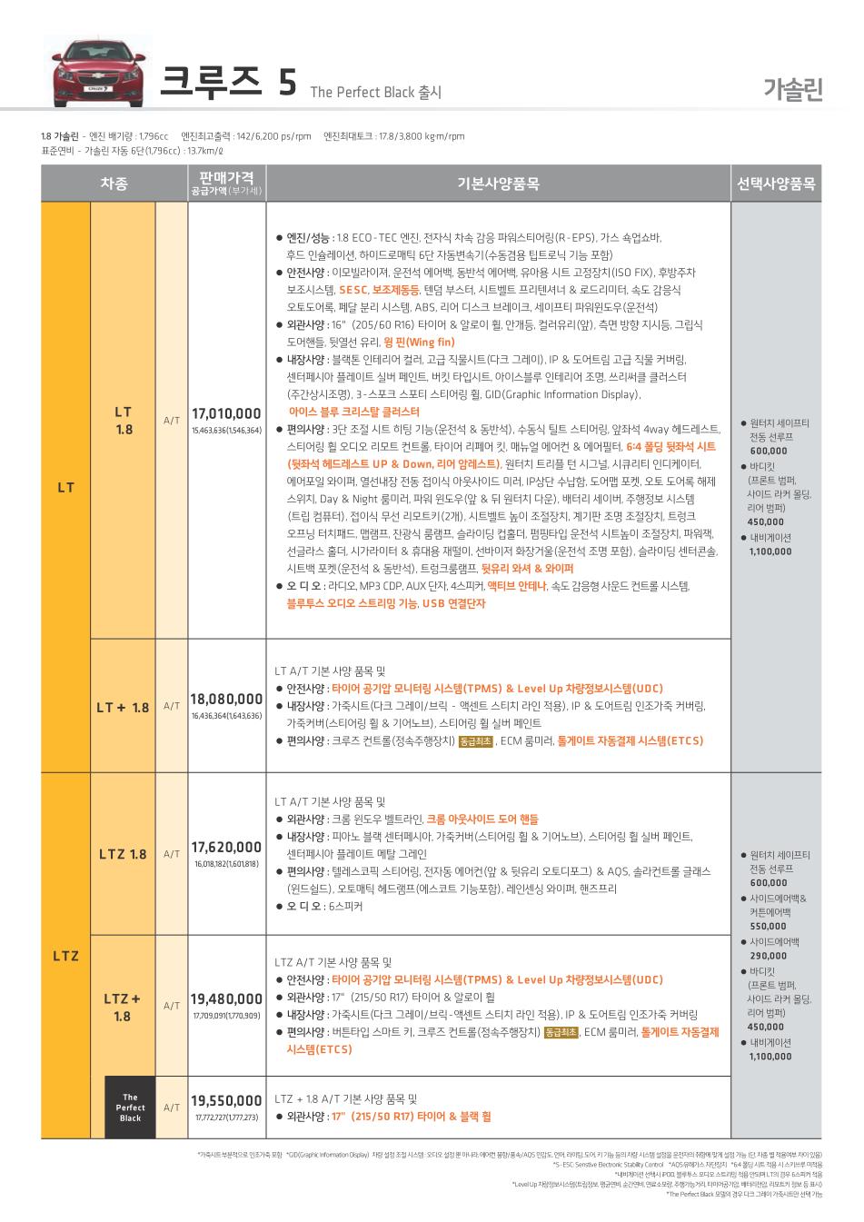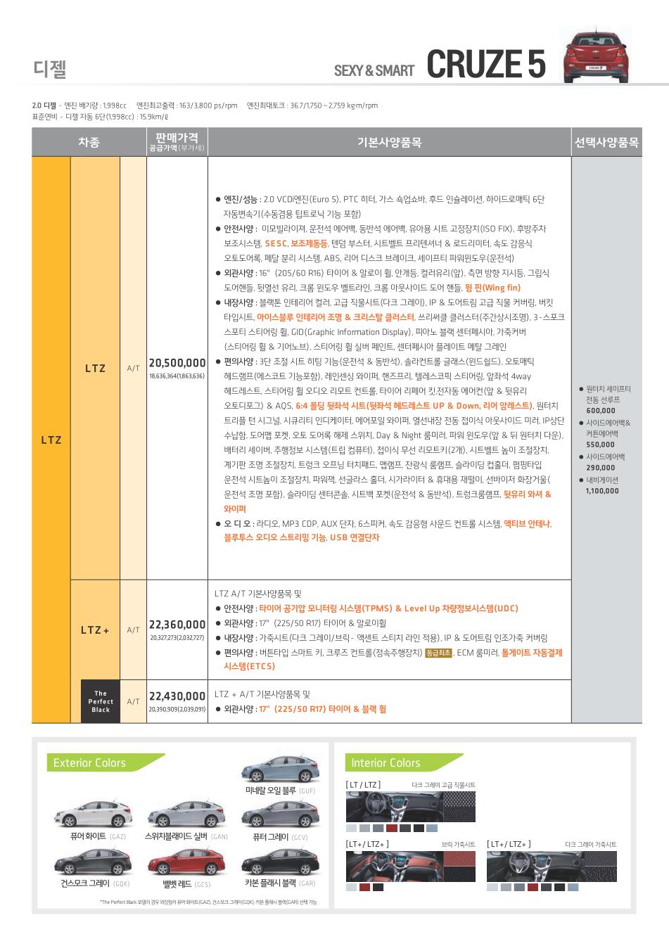 2011년 9월 크루즈5 신차가격표