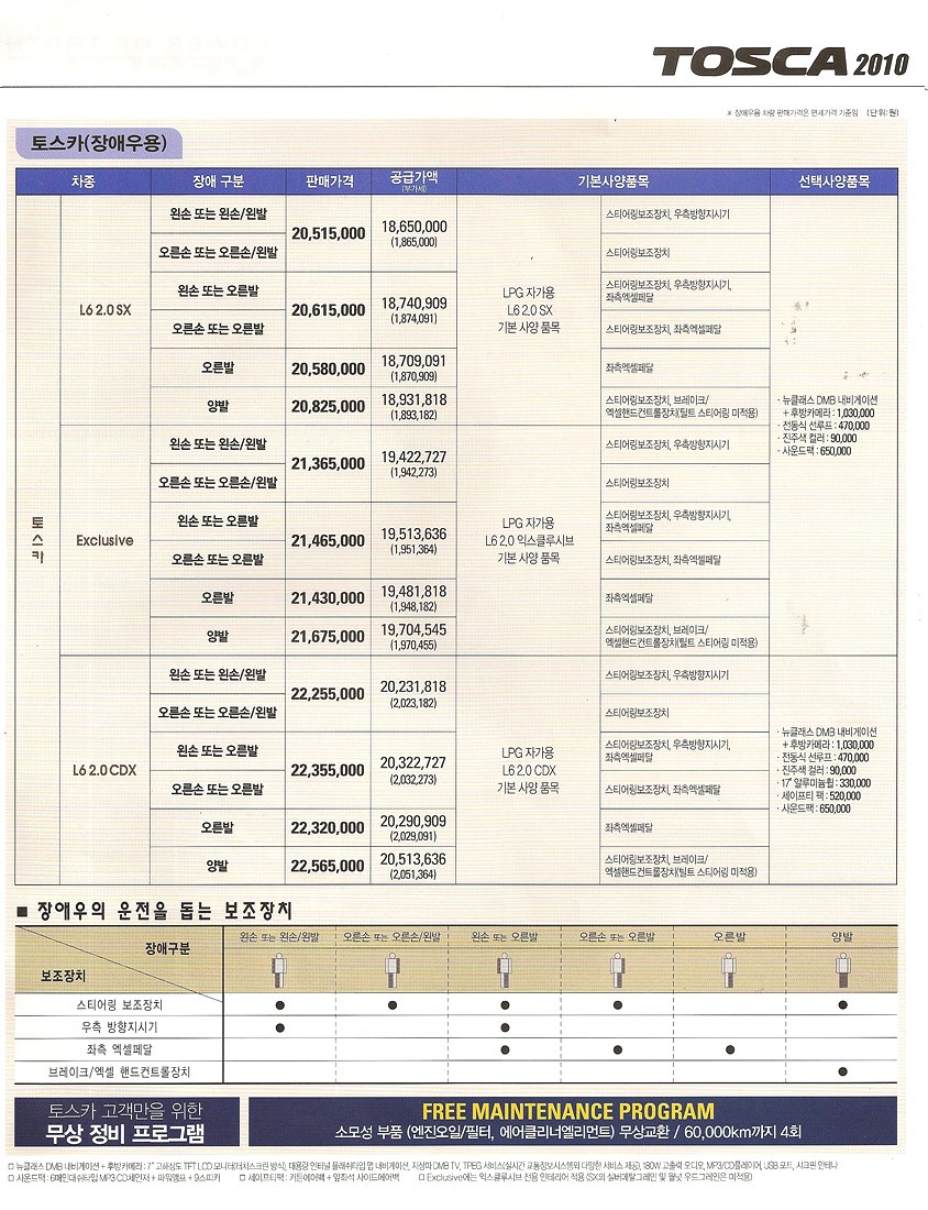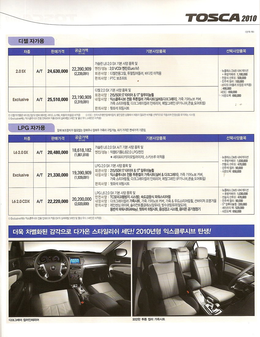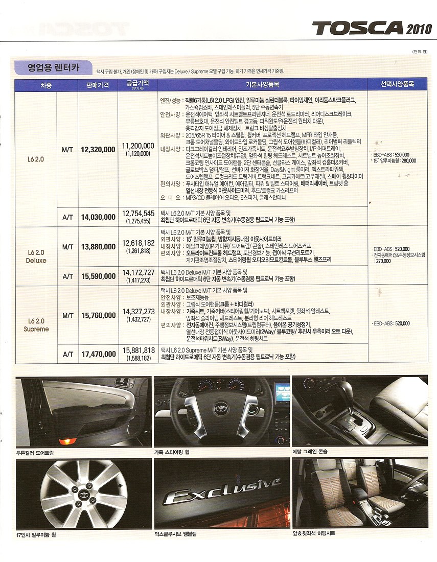 2010년 3월 토스카 신차가격표