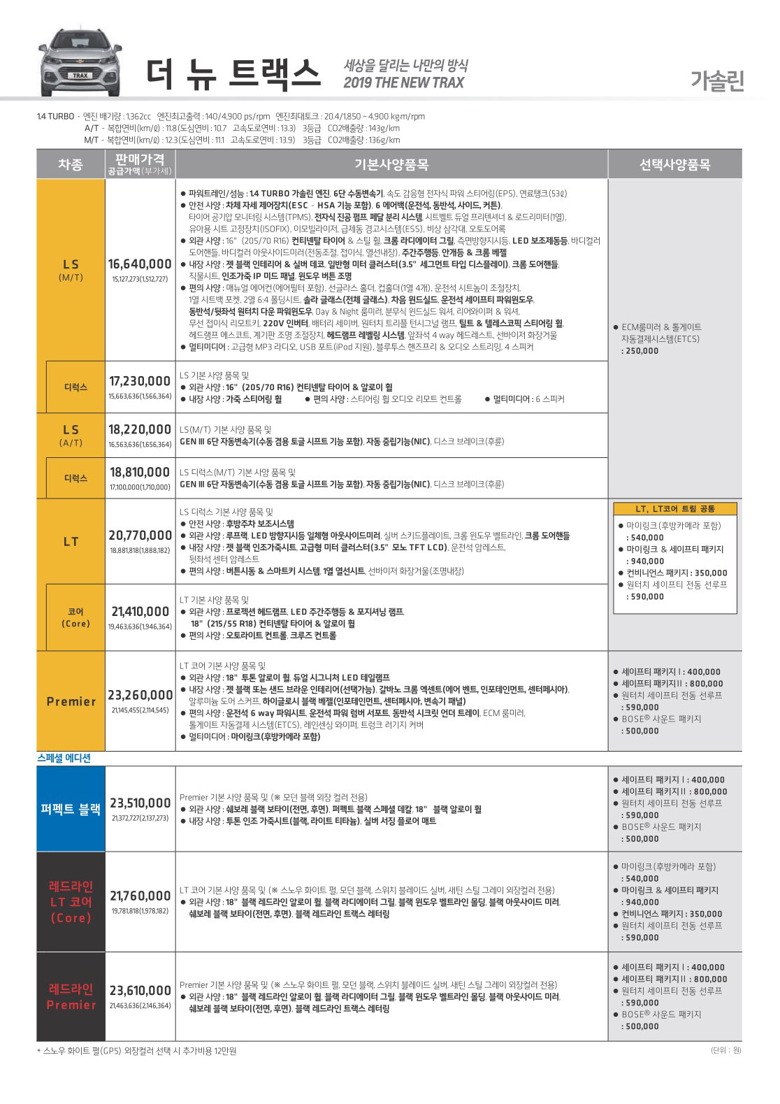 2018년 9월 트랙스 신차가격표 (레드라인 스페셜 에디션 출시)