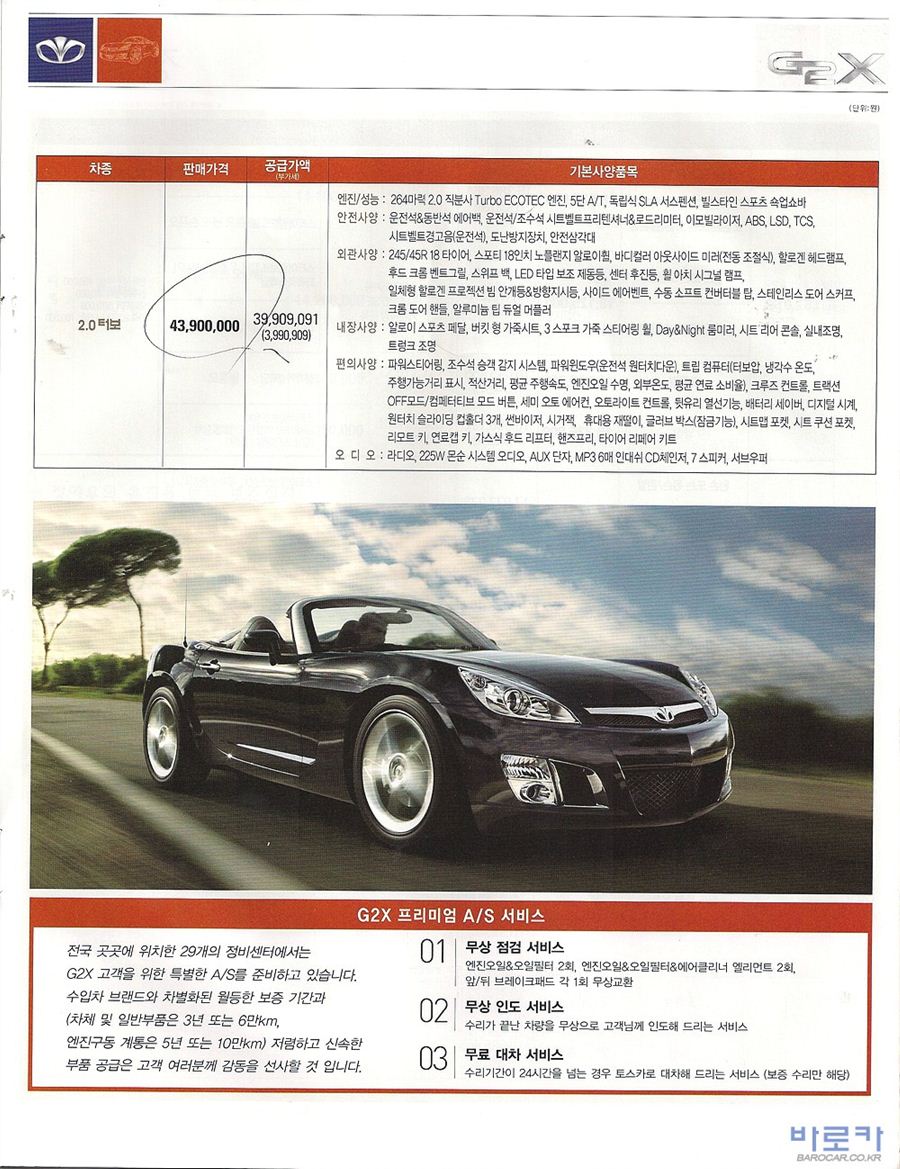 2008년 5월 G2X 신차가격표