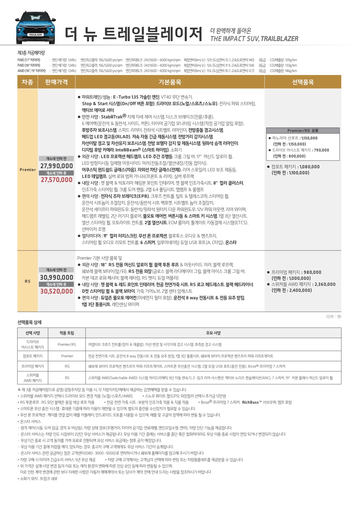 2025년 4월 트레일 블레이저 신차가격표