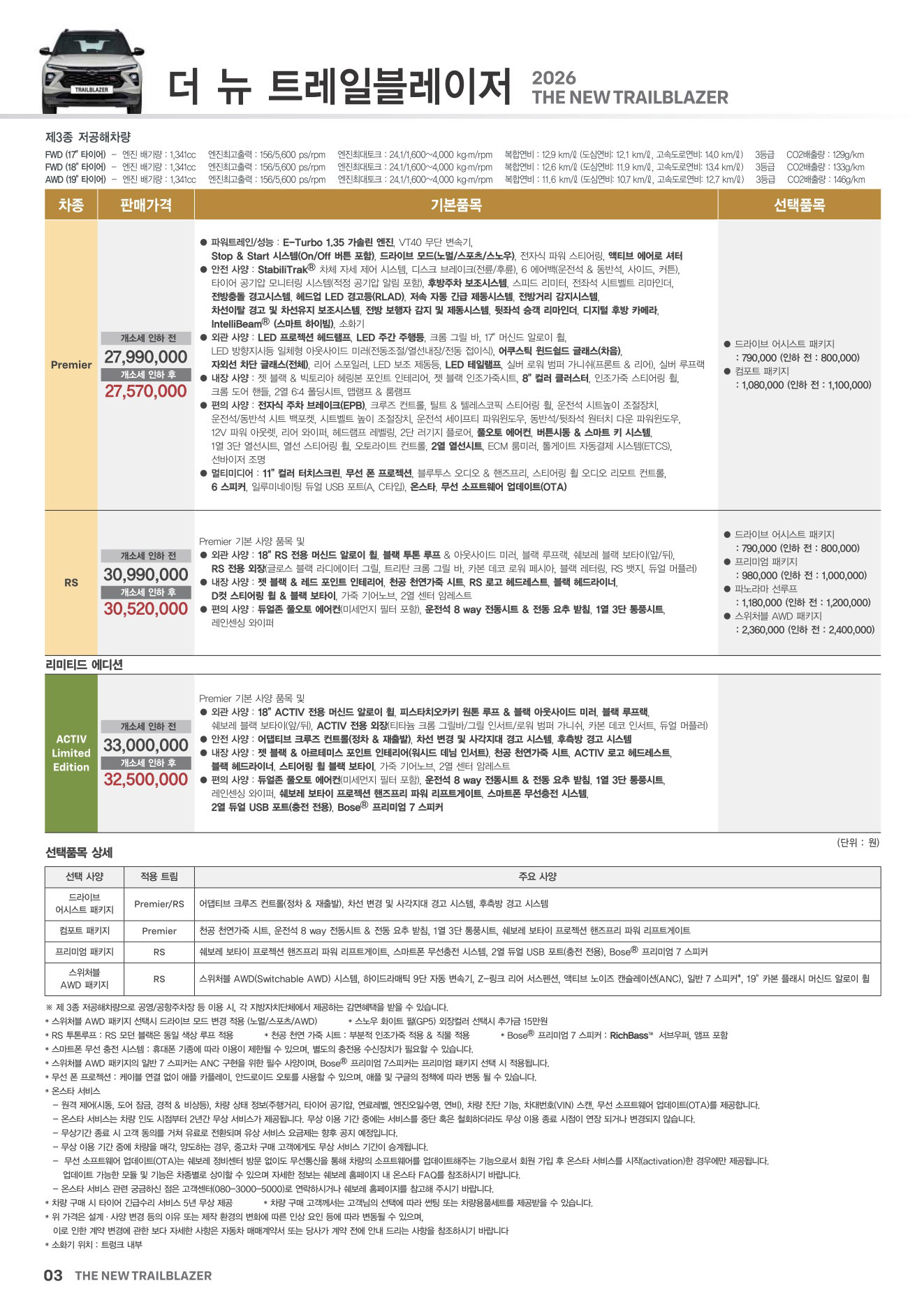 2025년 12월 트레일 블레이저 신차가격표