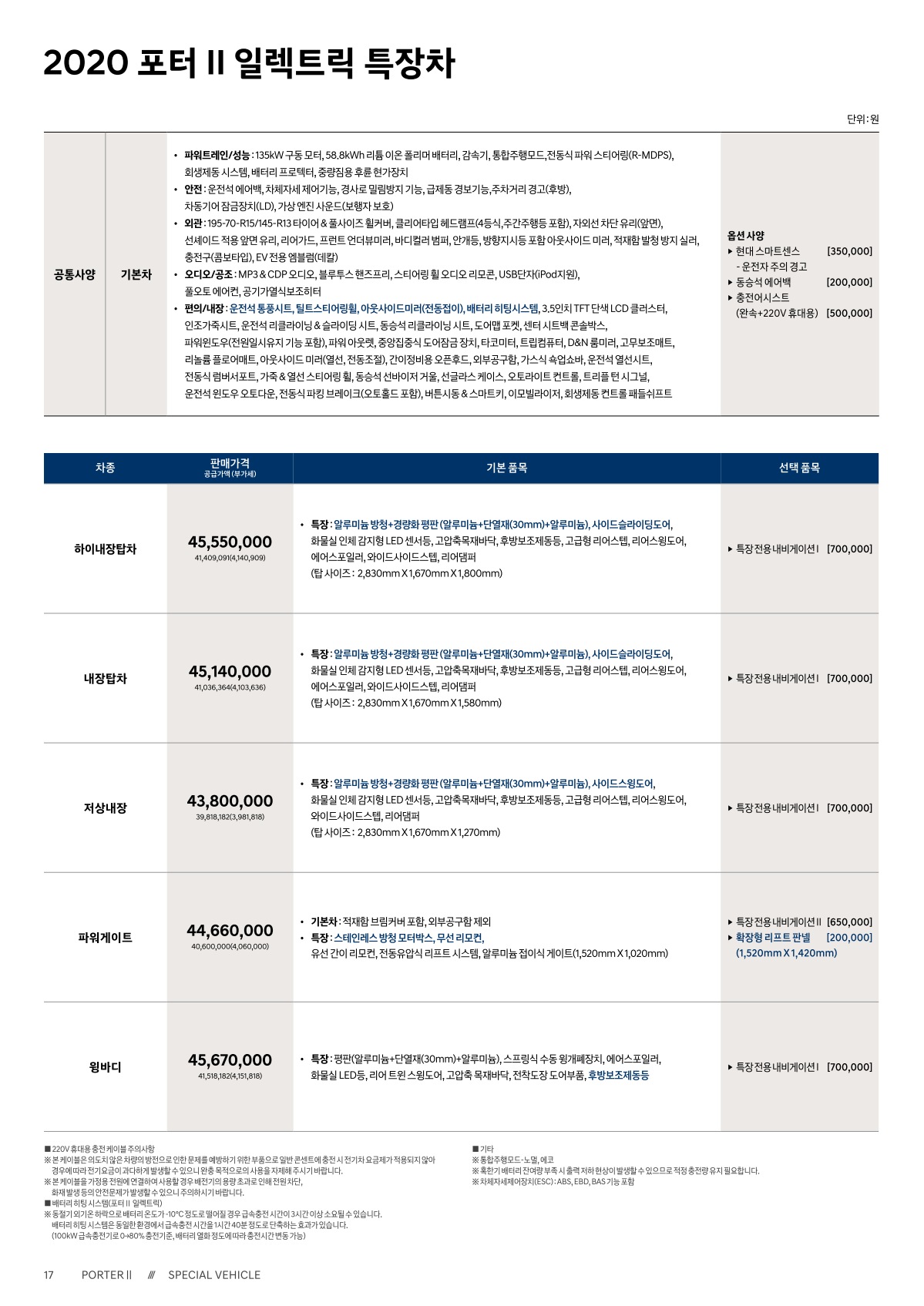 2021년 2월 포터 일렉트릭 특장차 신차가격표