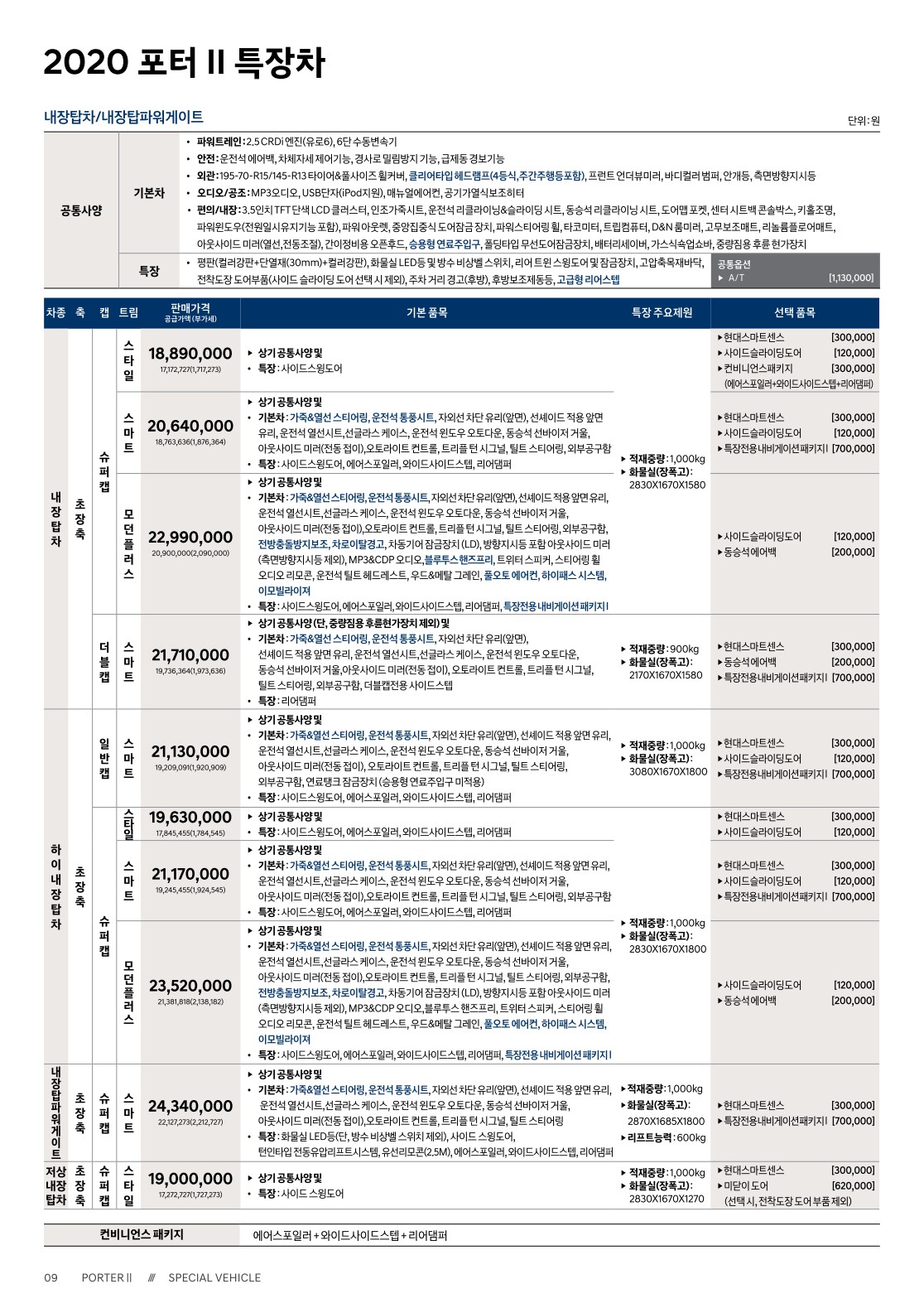 2020년 2월 포터 신차가격표