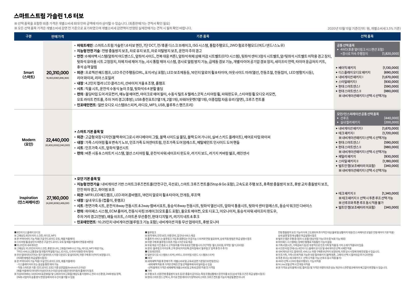 2020년 10월 베뉴 신차가격표 (2021년형 베뉴 출시)