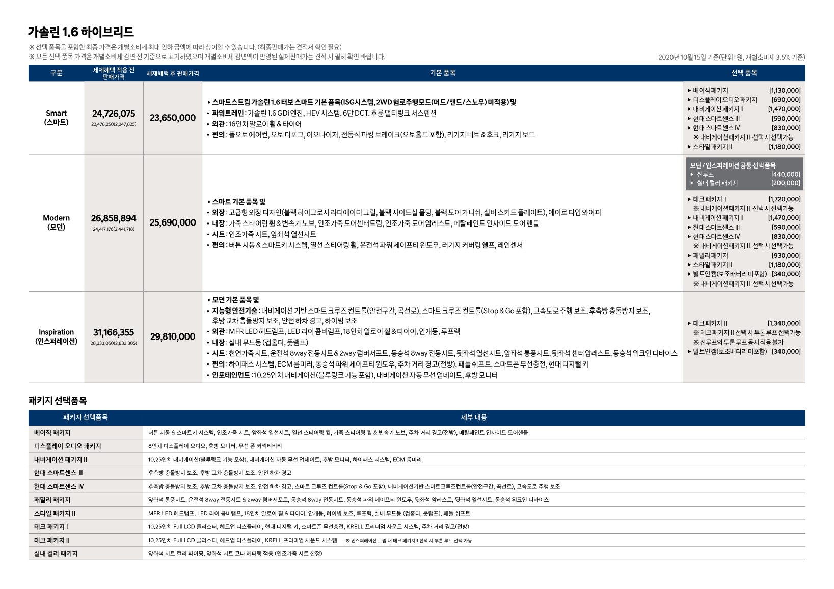 2020년 10월 코나 신차가격표 (더뉴코나 출시! 코나, 코나 하이브리드, 코나 N라인 신차가격표)