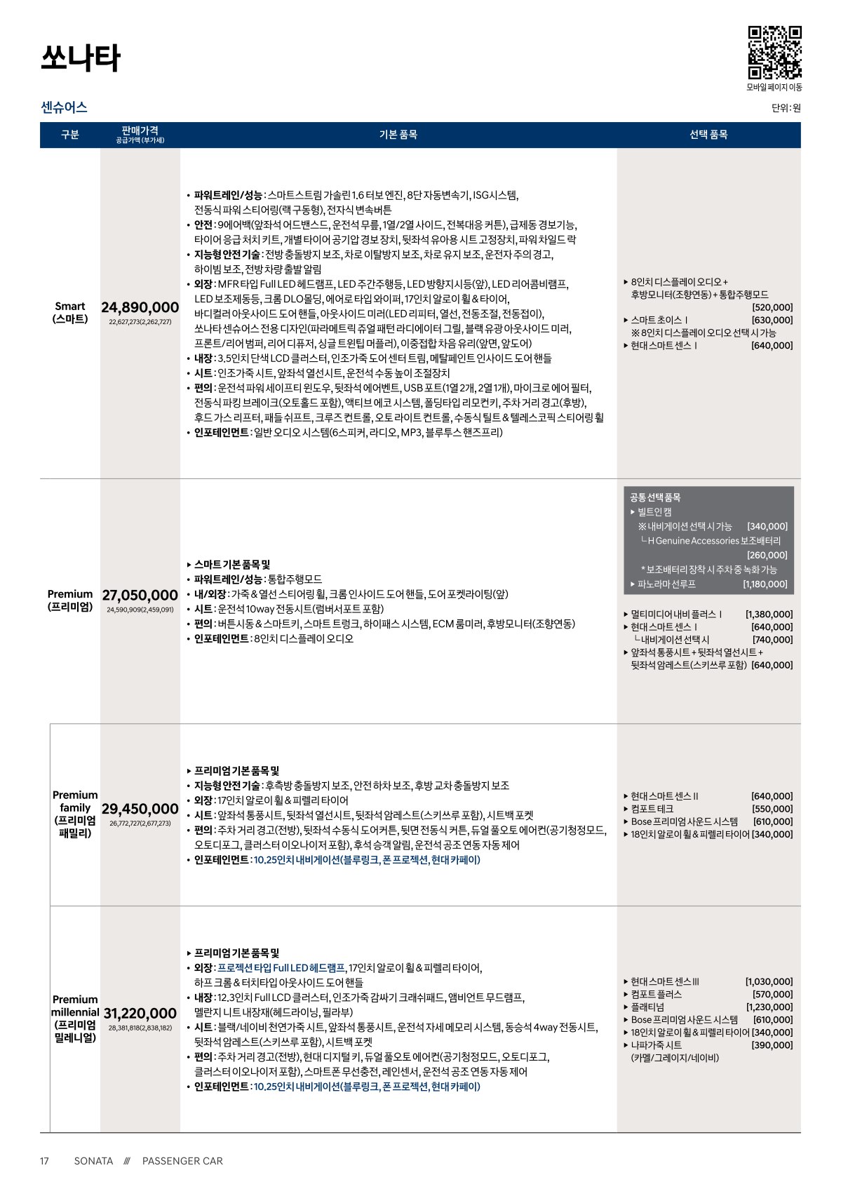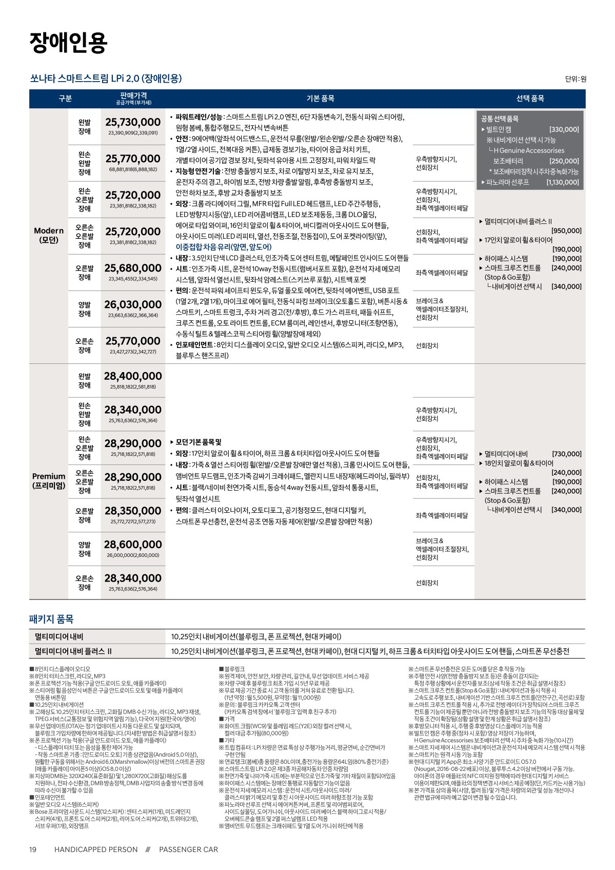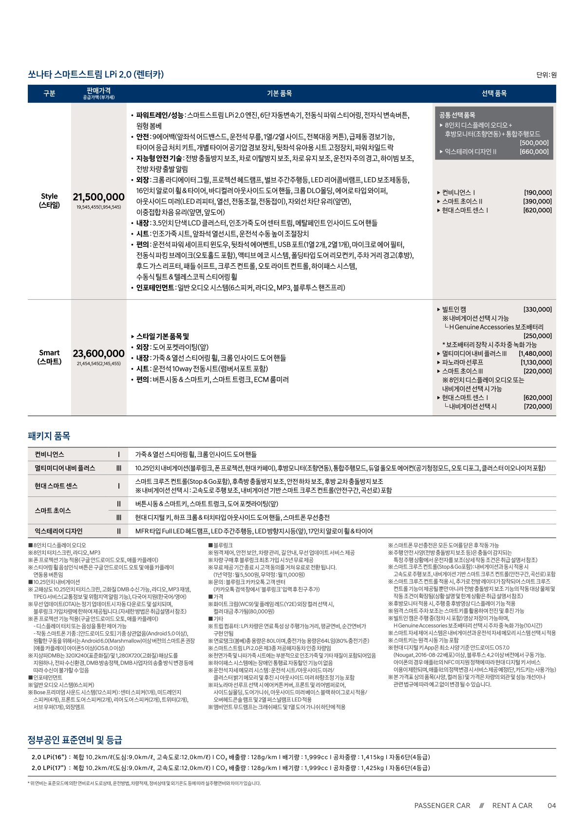 ※ 본 가격표의 모든 저작권은 해당 차량 제조사에 있습니다.