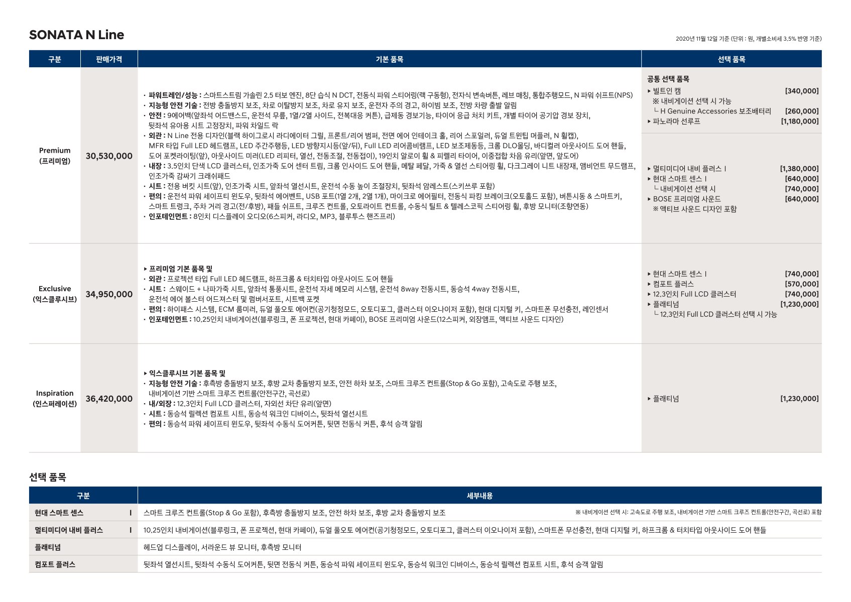2020년 11월 쏘나타 N라인 & 쏘나타 신차가격표 (쏘나타 N라인 출시!!!)