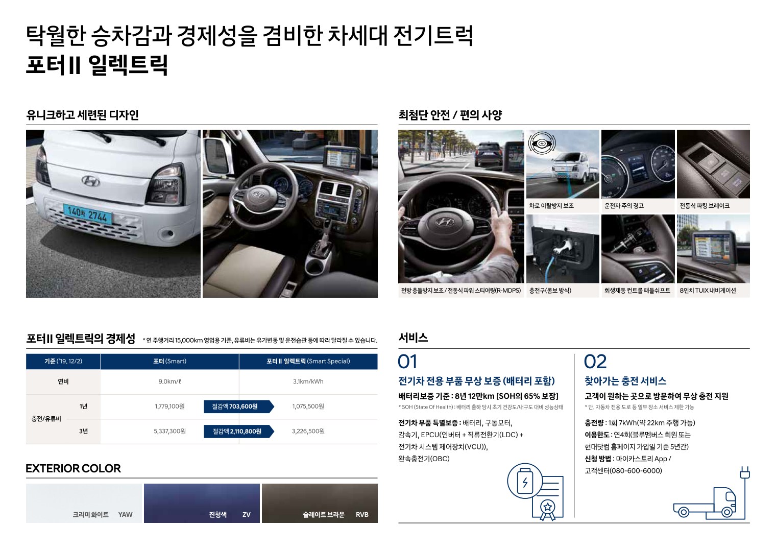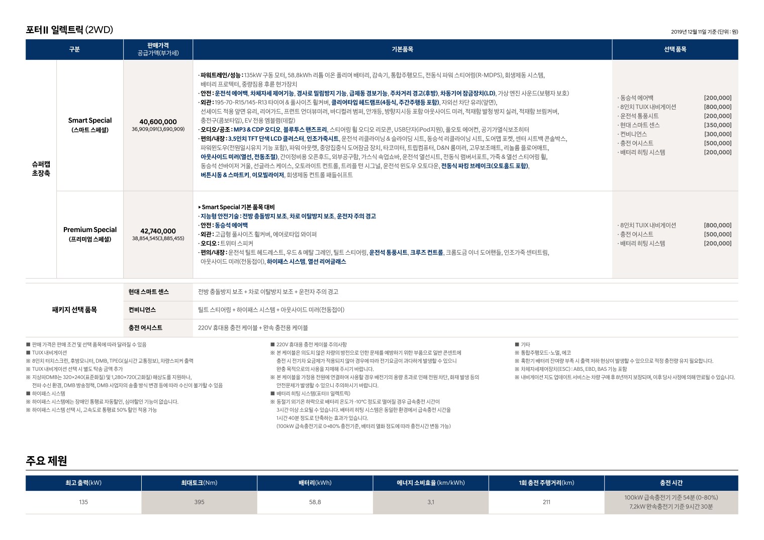 2019년 12월 포터 전기차 가격표 (포터 일렉트릭 출시)