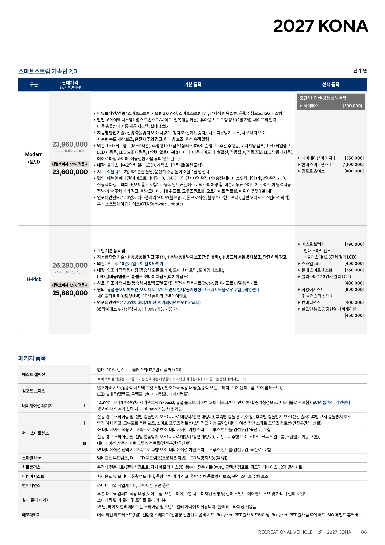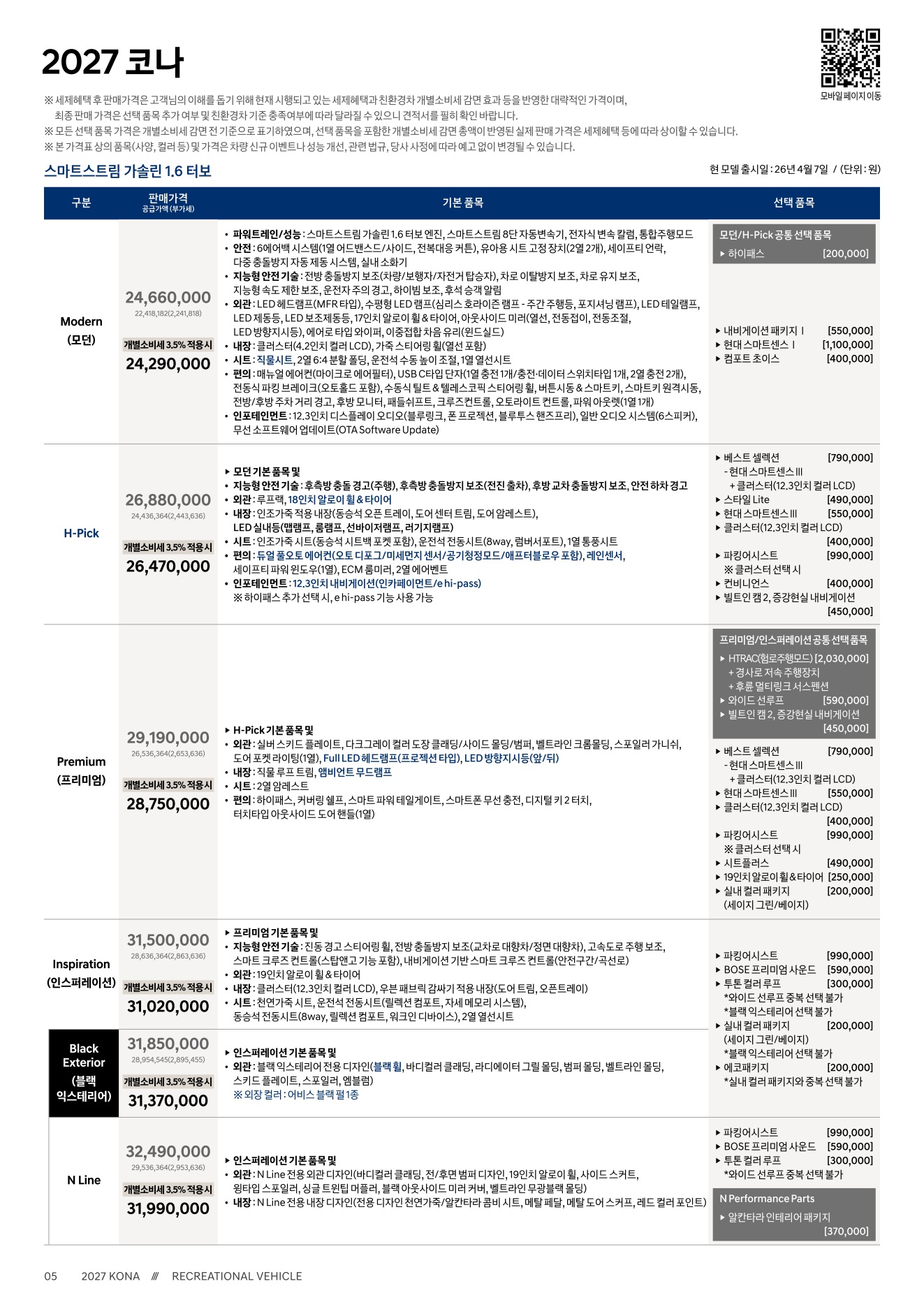 2026년 4월 코나 신차가격표 (2027년형 코나 출시)
