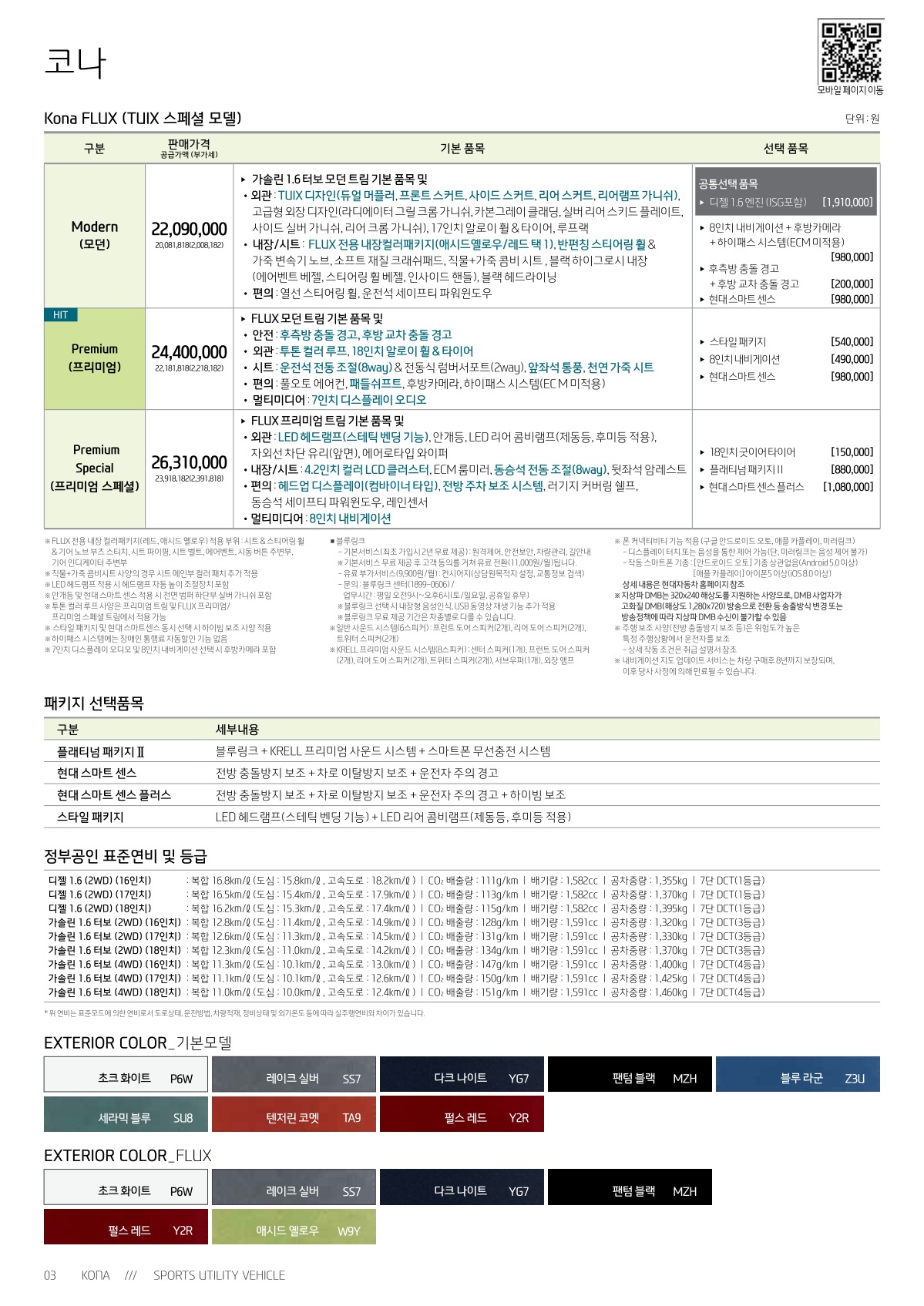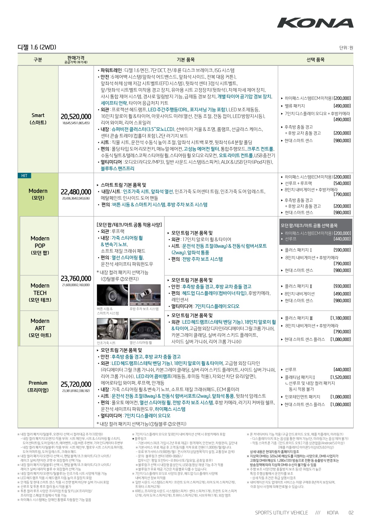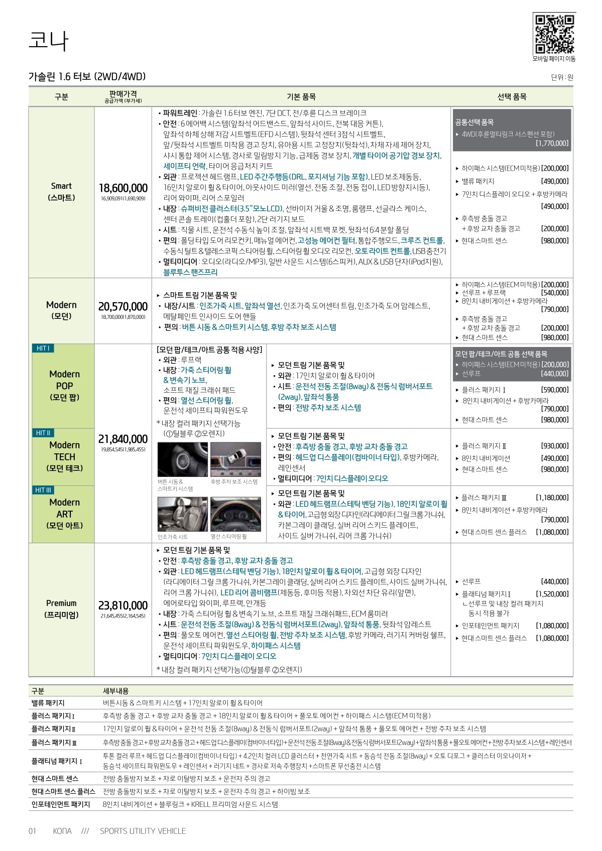 2018년 12월 코나 신차가격표
