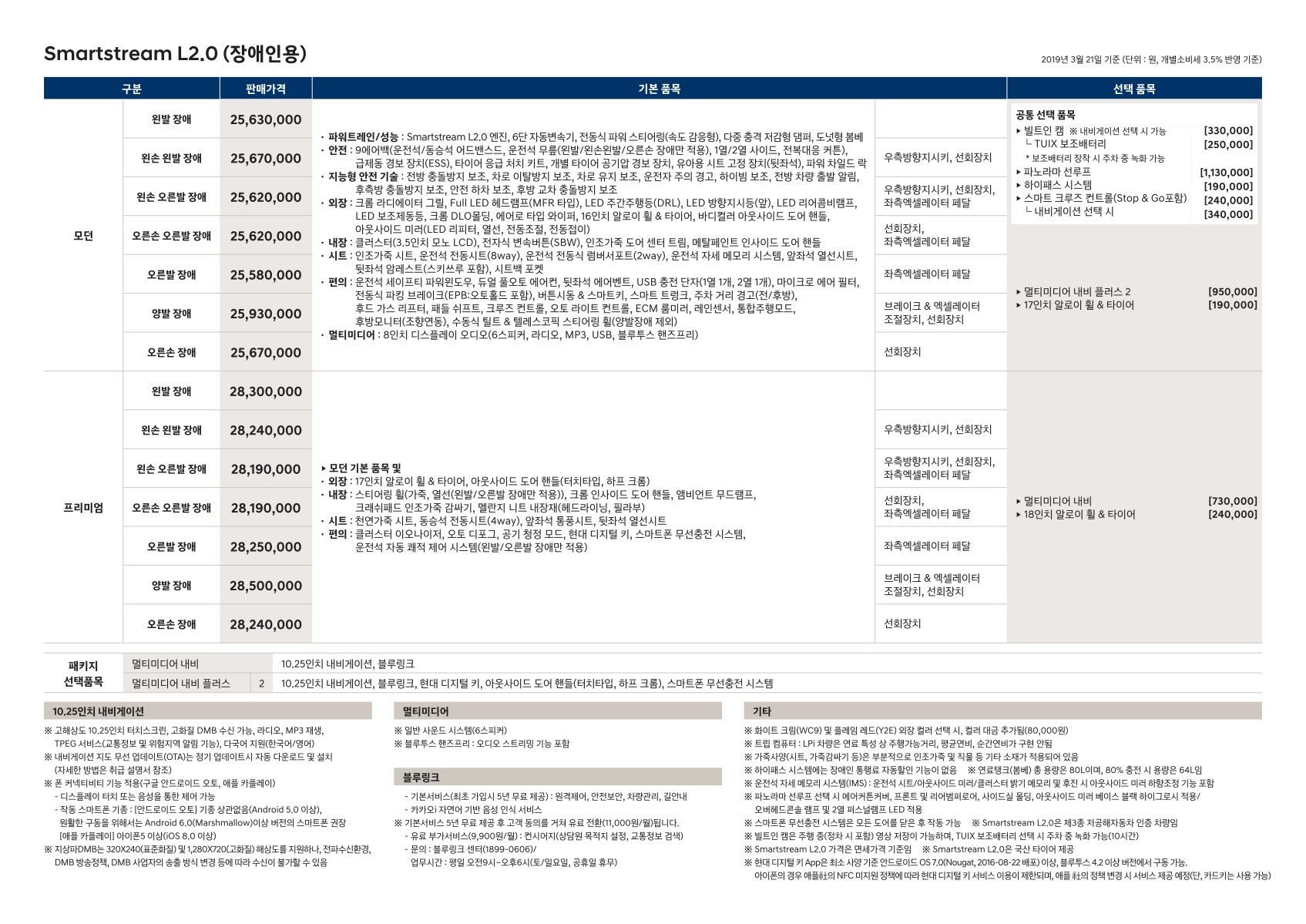 2019년 2월 쏘나타 신차가격표 (DN8 쏘나타 / 8세대 쏘나타)