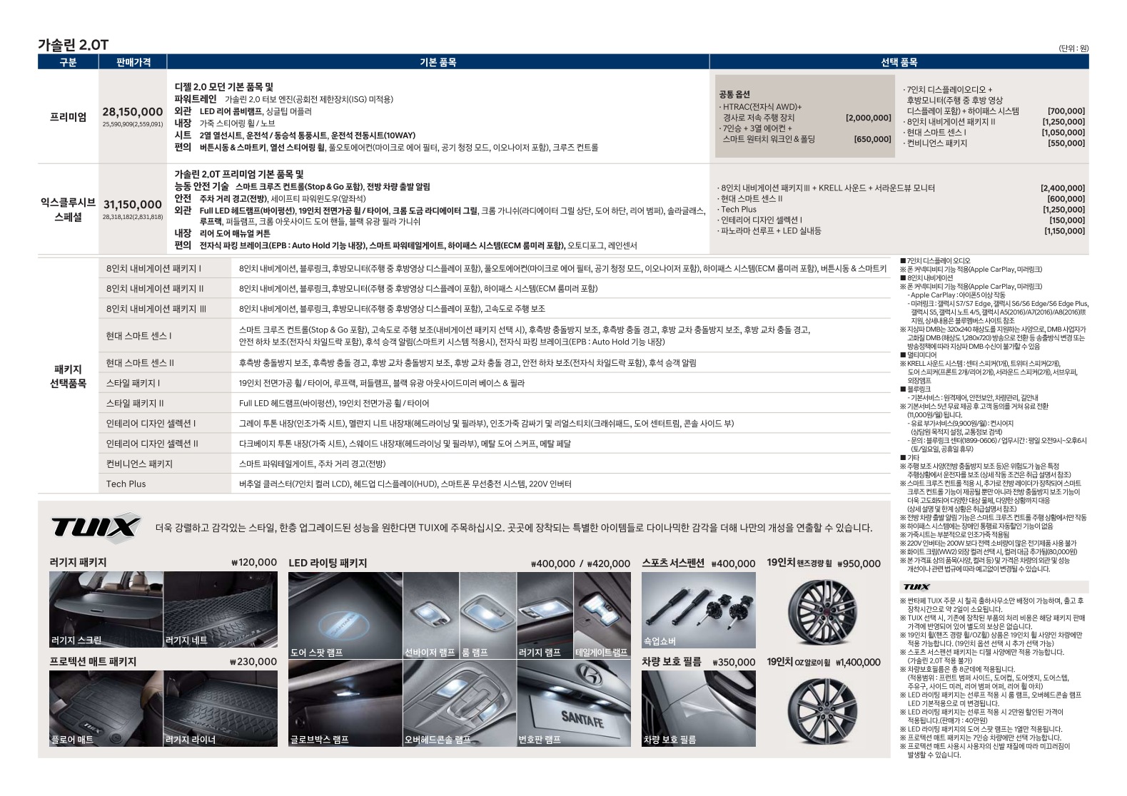 2018년 2월 싼타페 신차가격표 (싼타페TM 신차가격표)