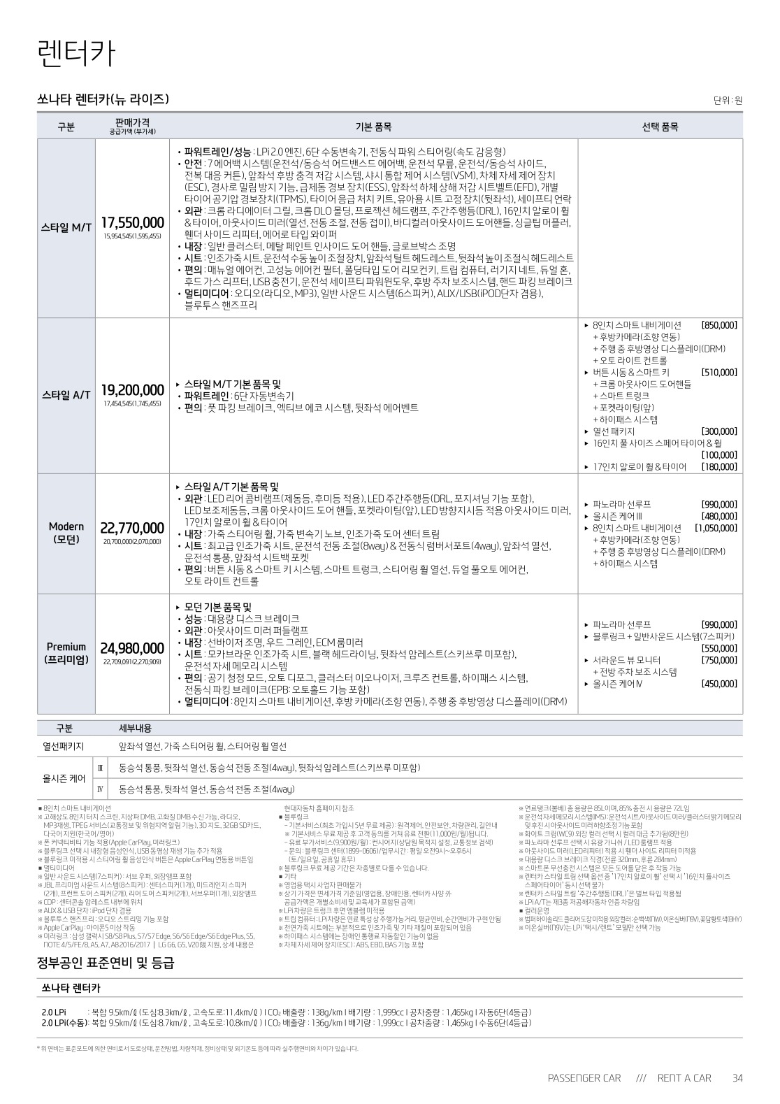 ※ 본 가격표의 모든 저작권은 해당 차량 제조사에 있습니다.