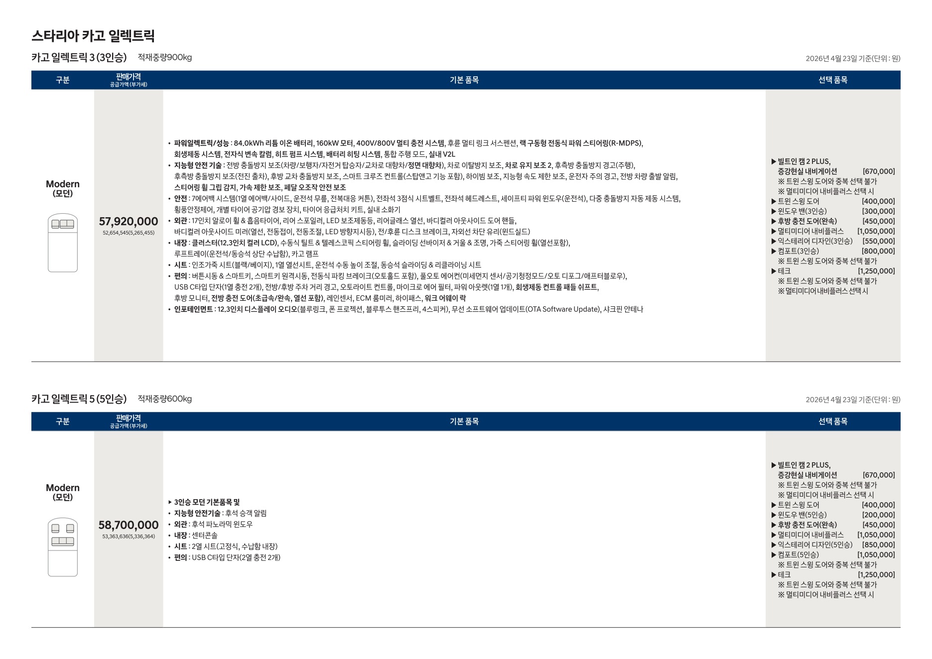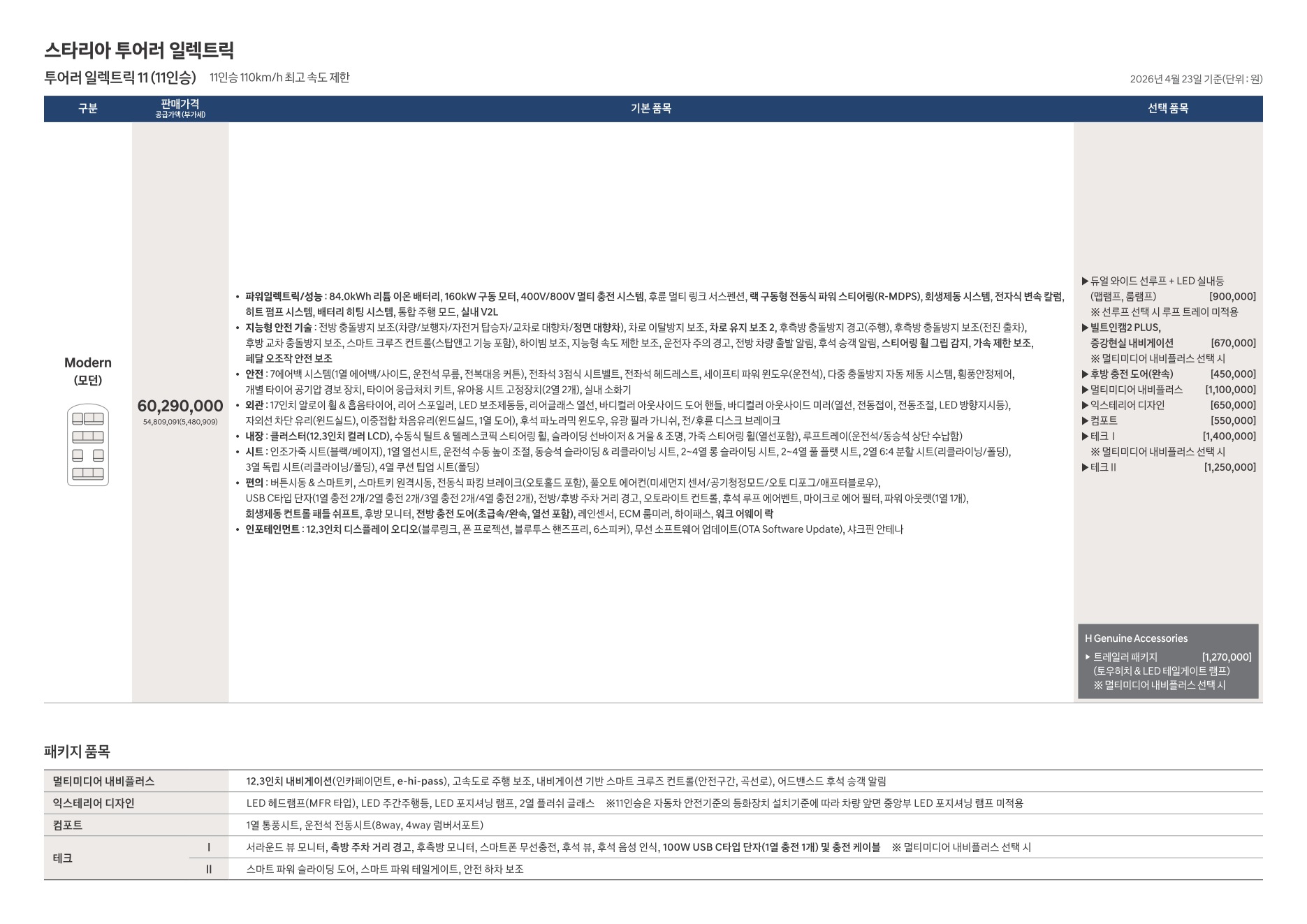 2026년 4월 스타리아 일렉트릭 신차가격표 (스타리아 전기차 출시)