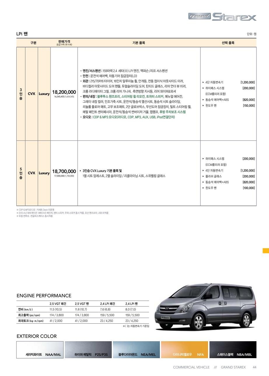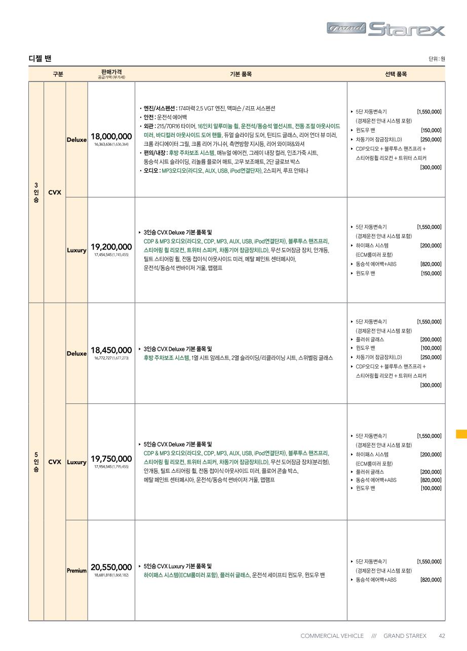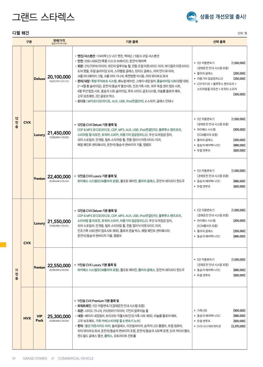 2011년 9월 그랜드스타렉스 특장차 신차가격표