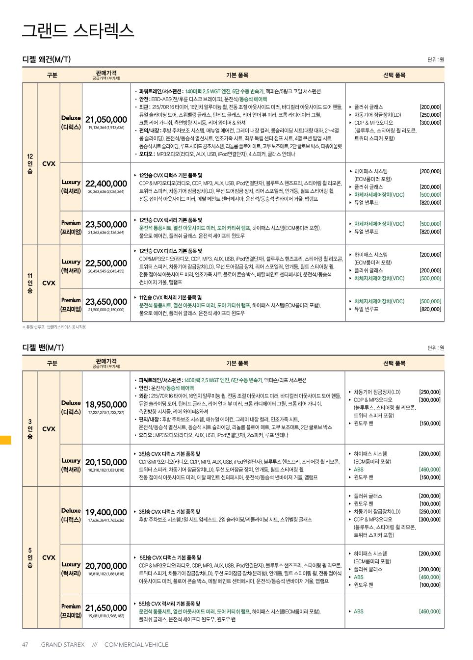 2012년 1월 그랜드스타렉스 신차가격표 (유로5 A-2 엔진 장착)