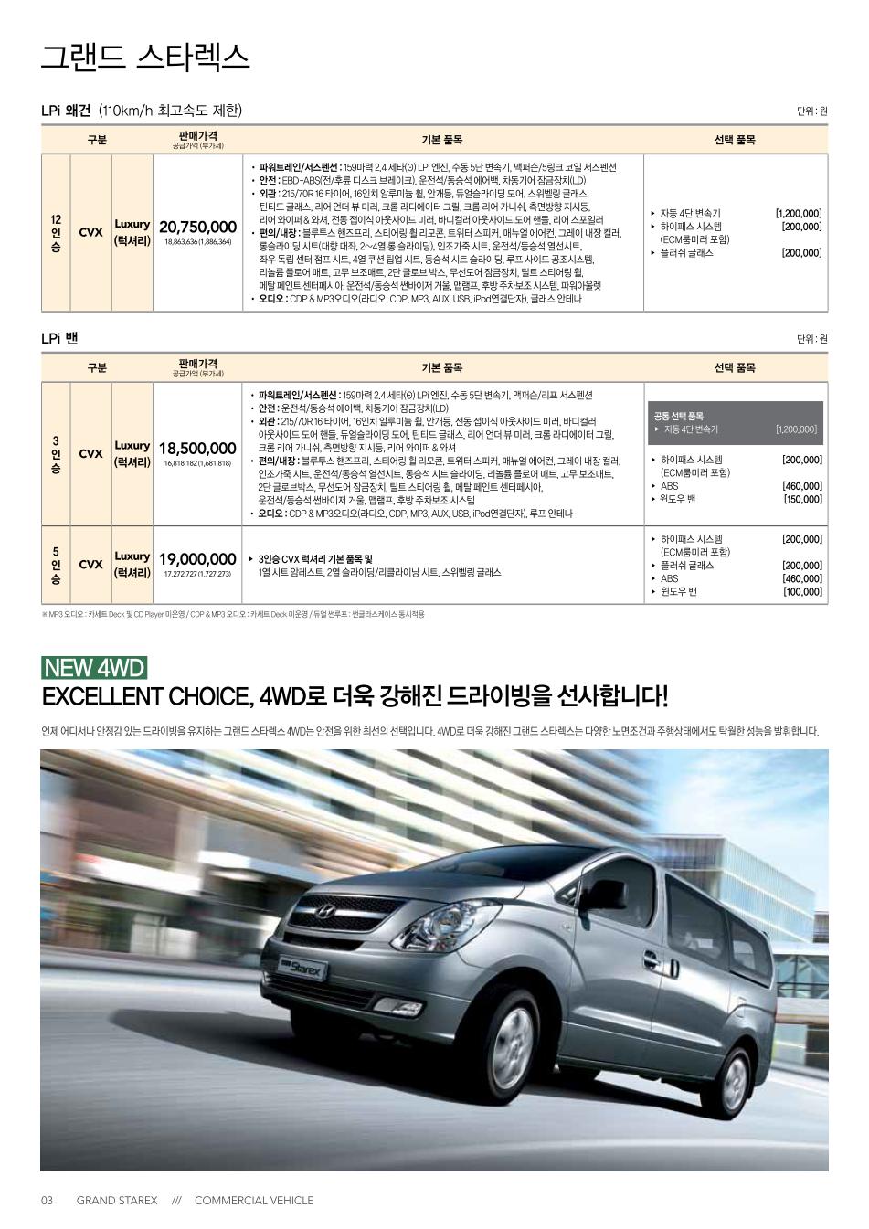 2013년 3월 그랜드스타렉스 특장차 신차가격표 (캠핑카 출시)