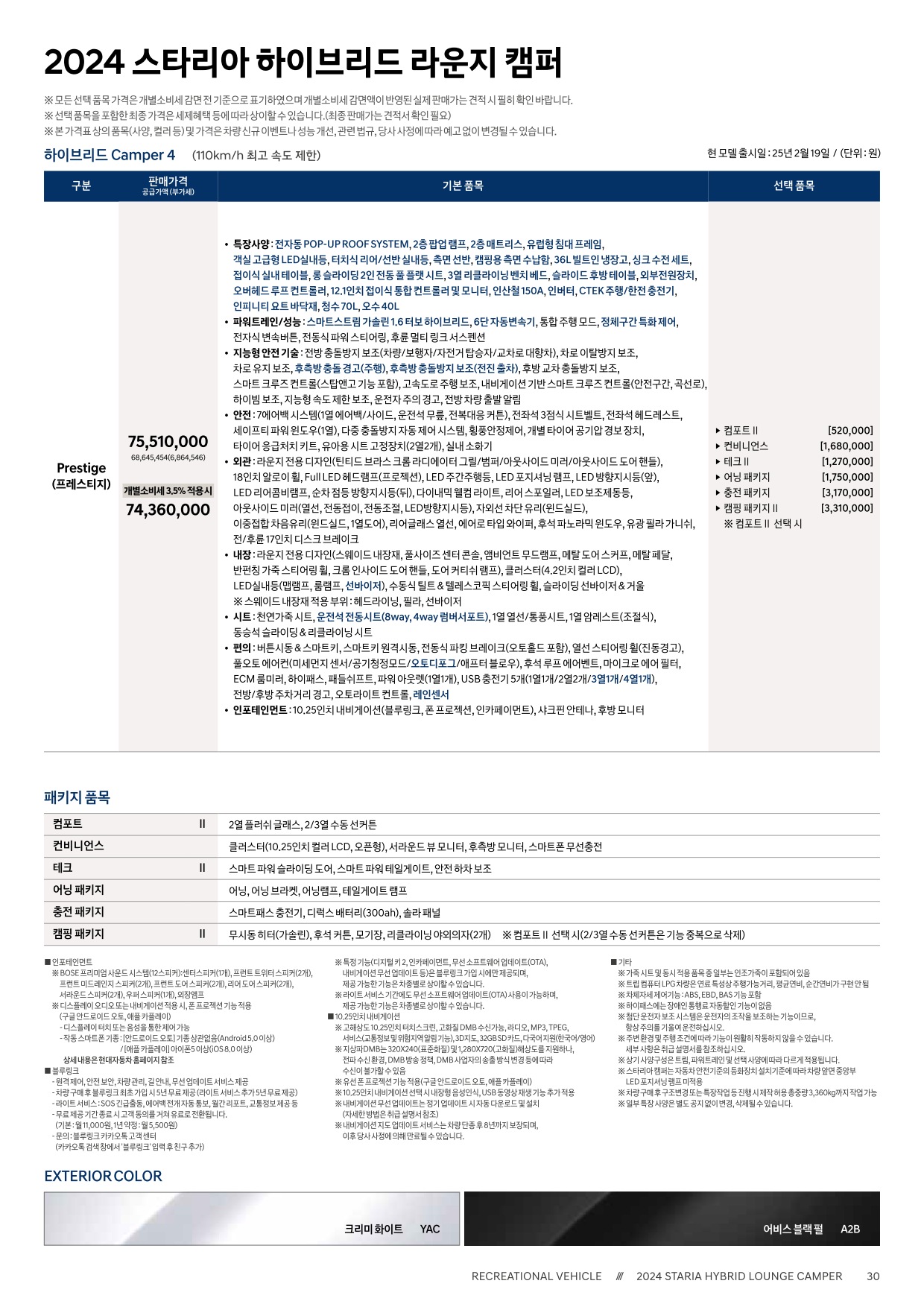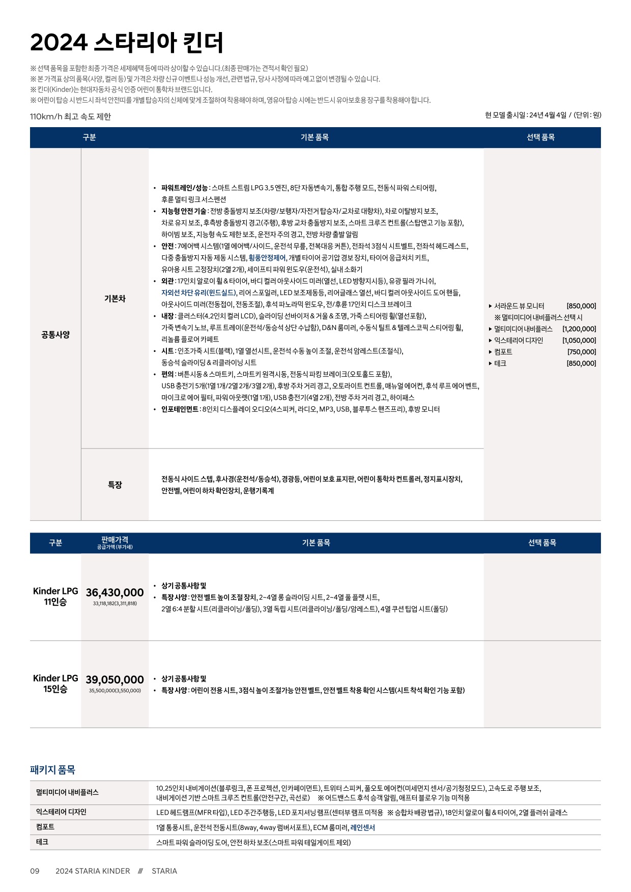 2025년 5월 스타리아 킨더 & 캠퍼 신차가격표