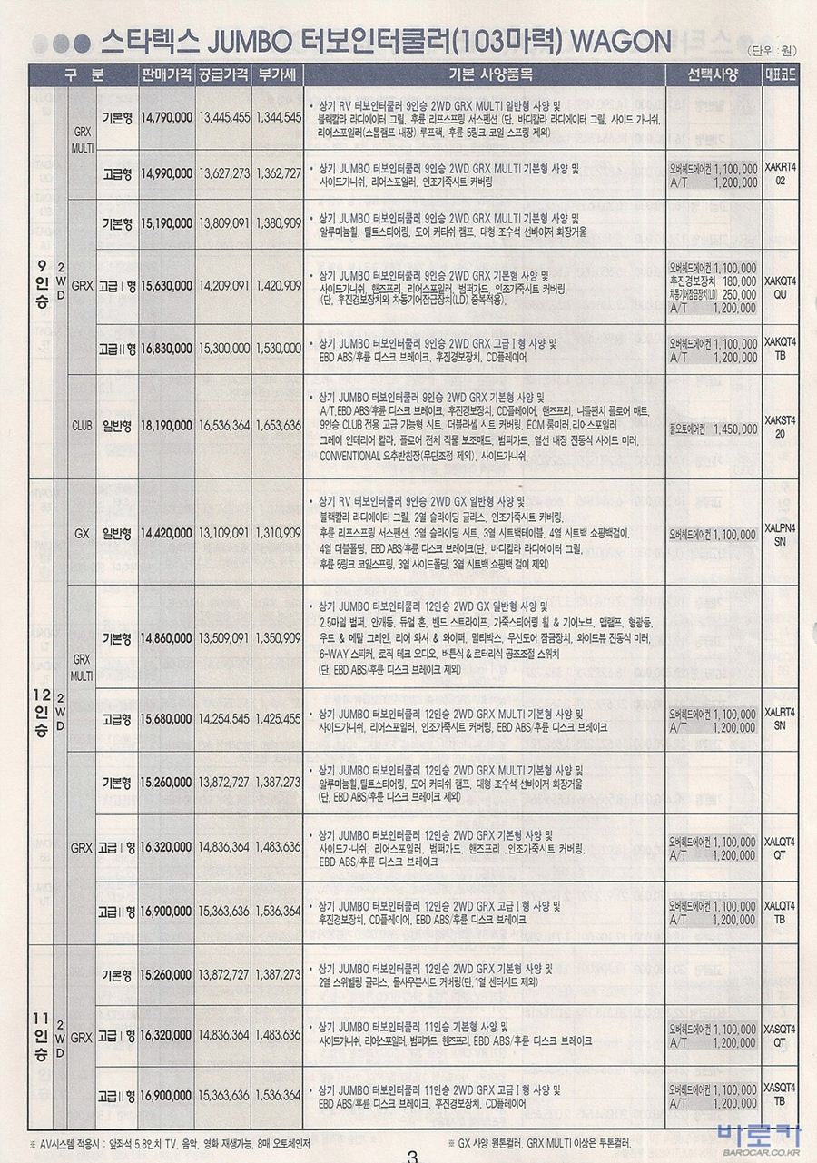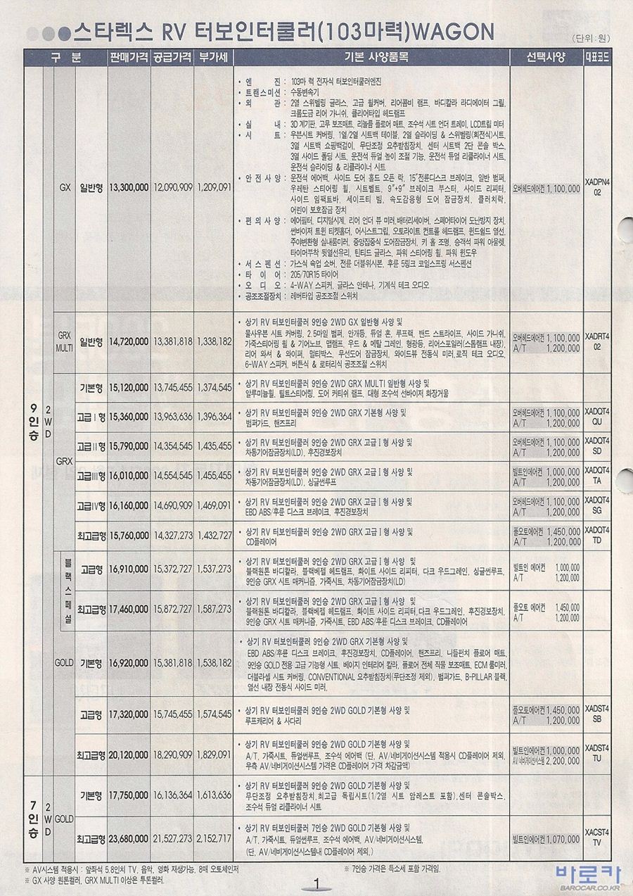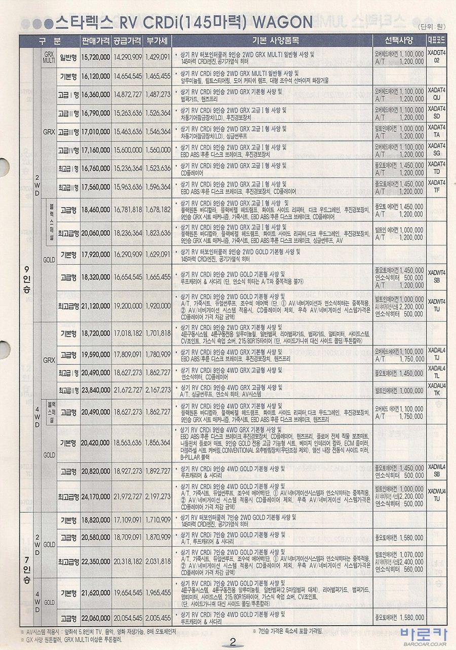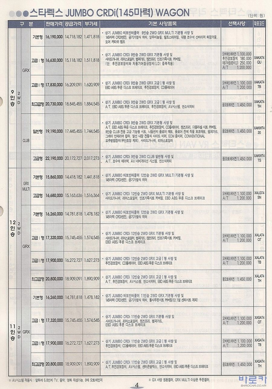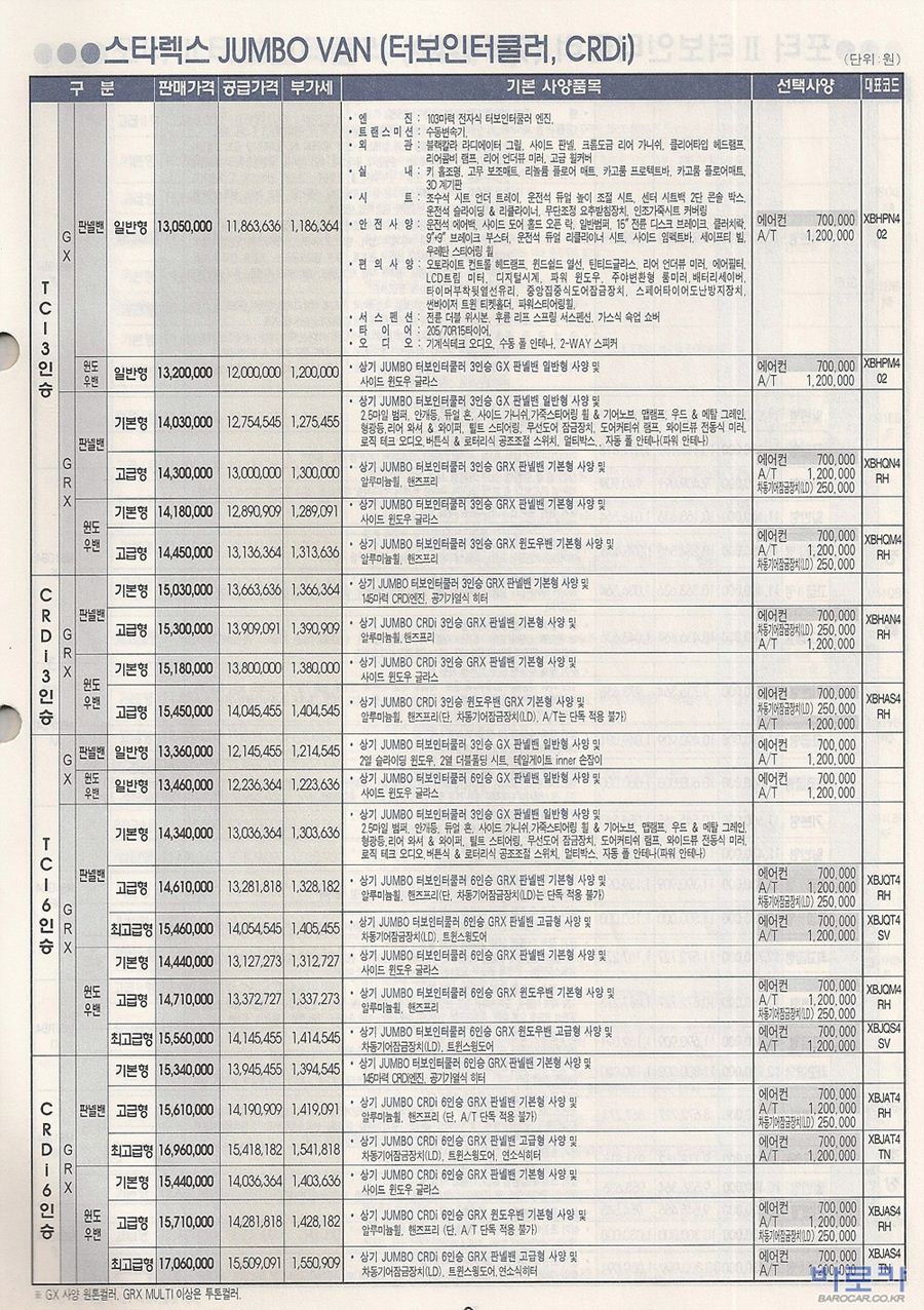 2006년 1월 스타렉스 신차가격표 (RV/점보/밴)