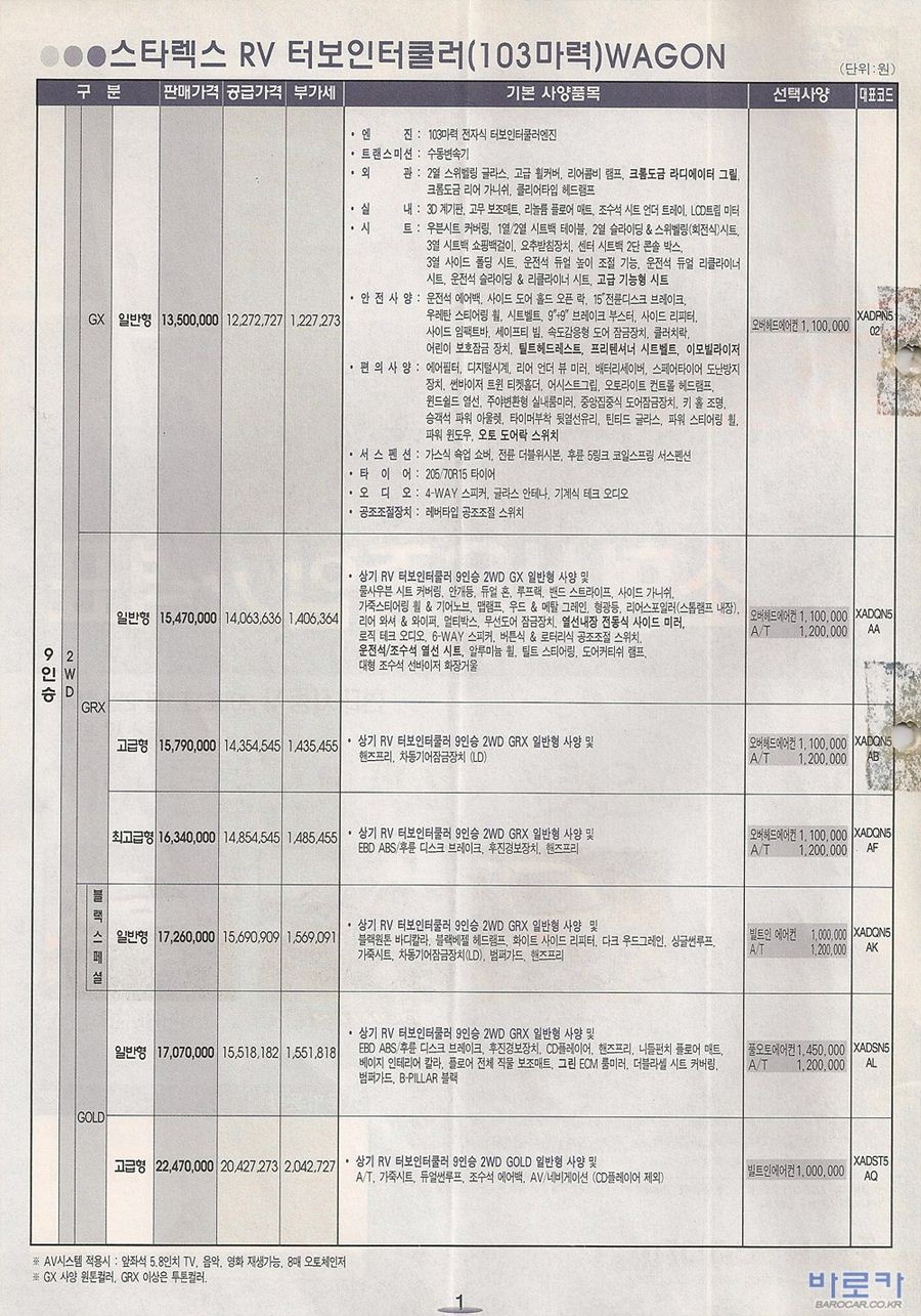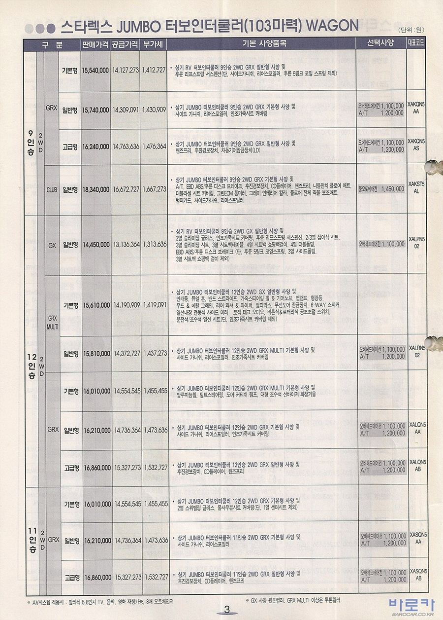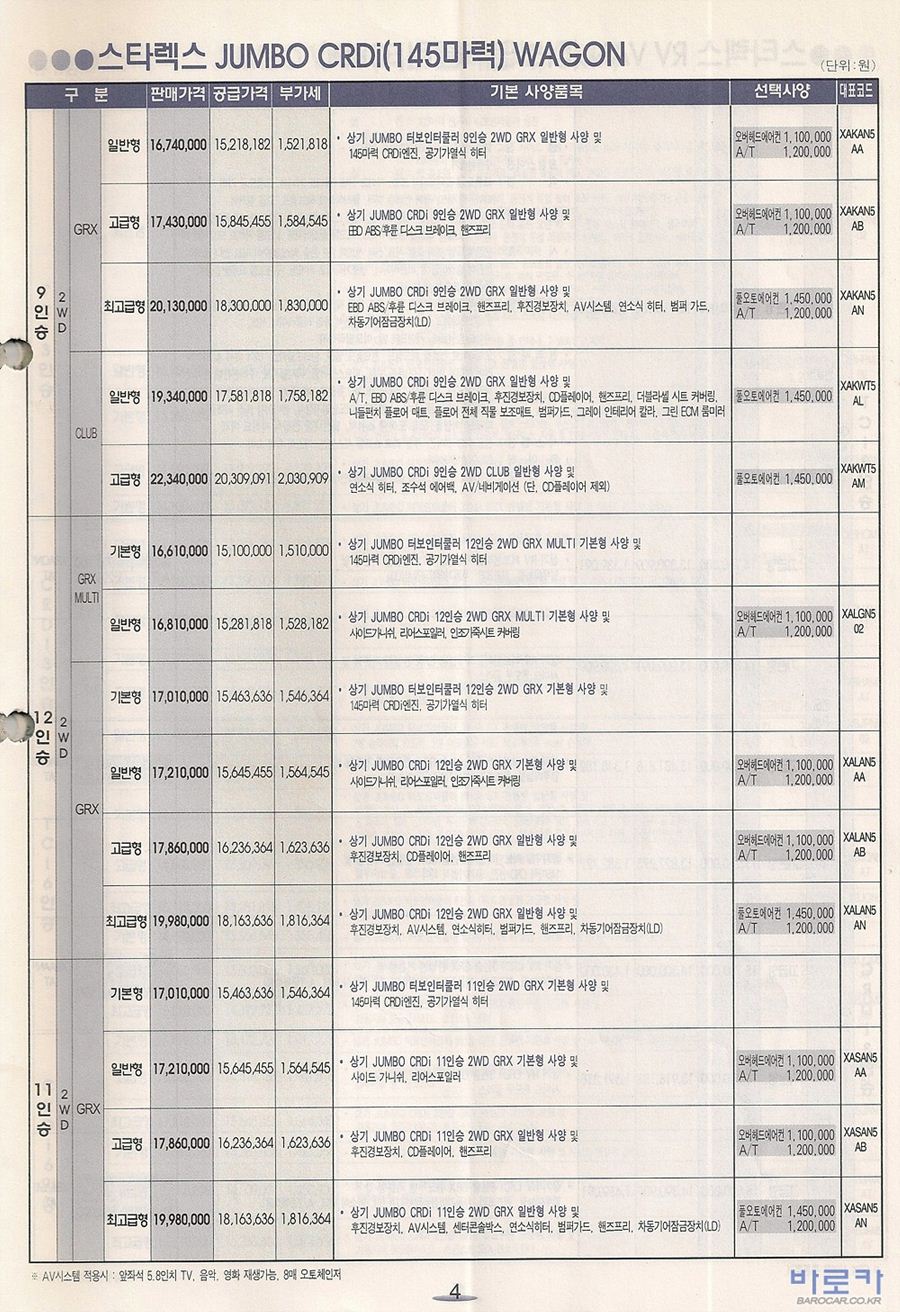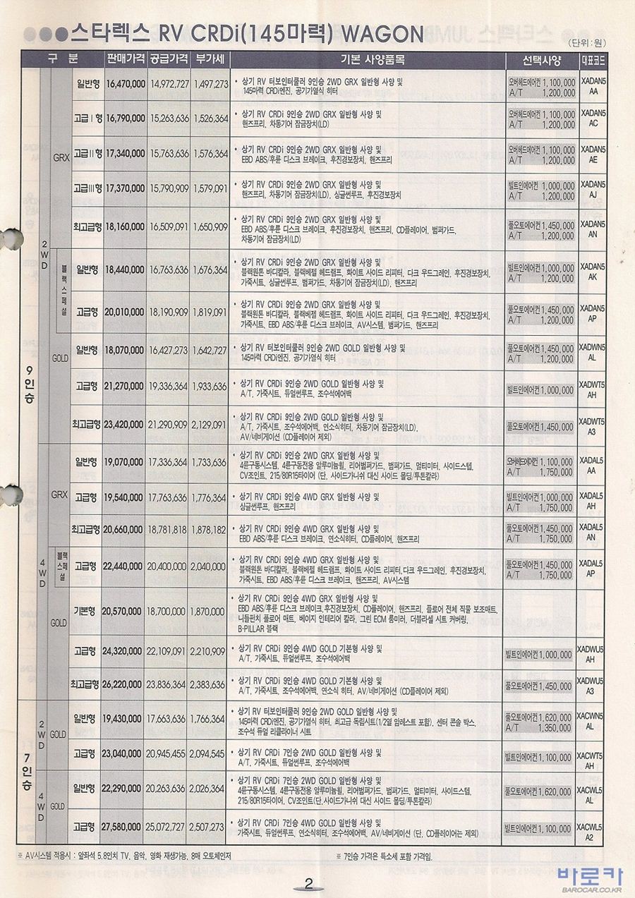 2006년 1월 스타렉스 신차가격표 (RV/점보/밴)