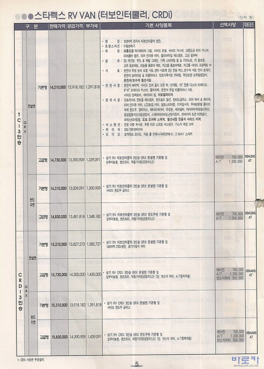 2005년 5월 스타렉스 신차가격표 (RV/점보/밴/리무진)