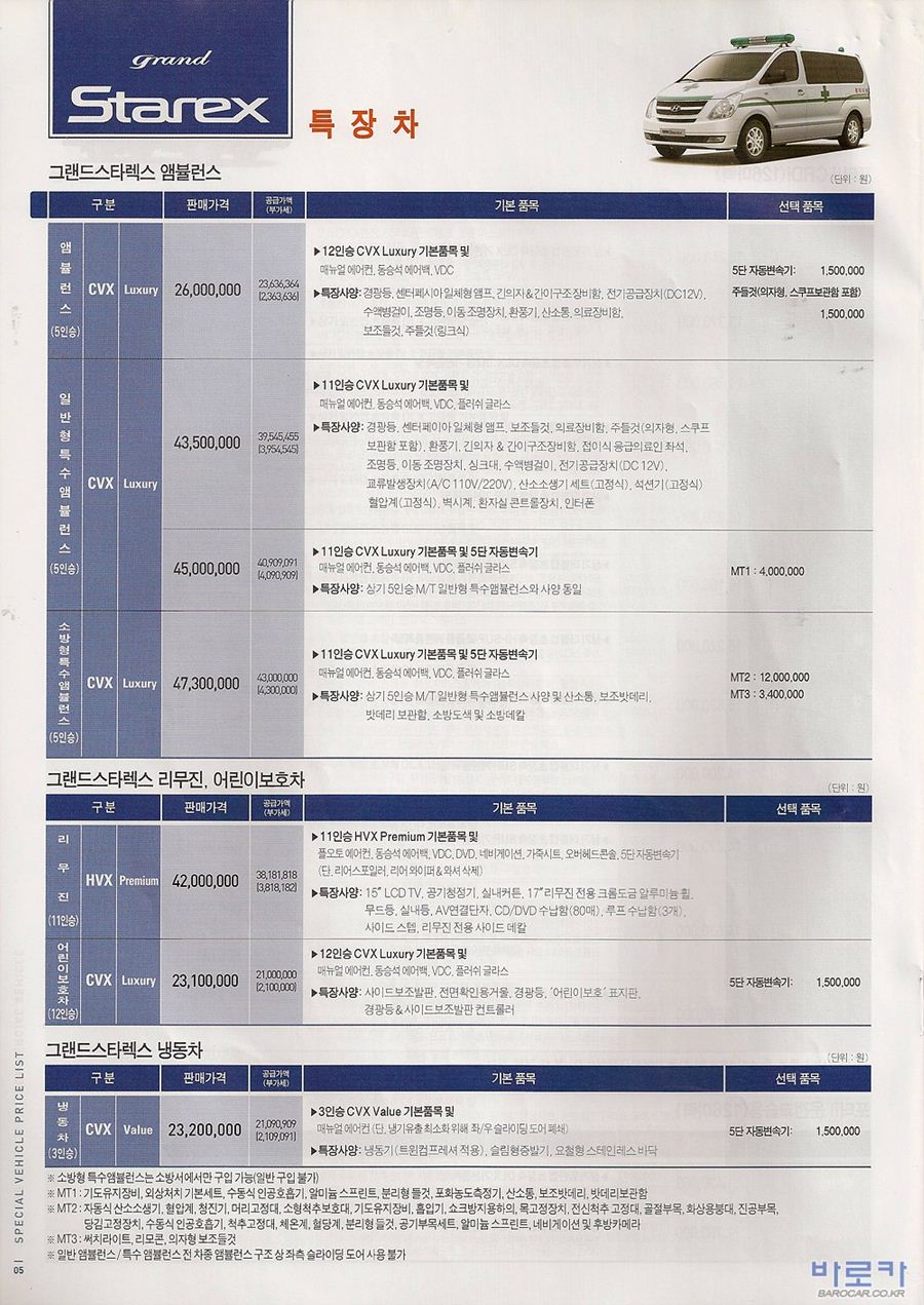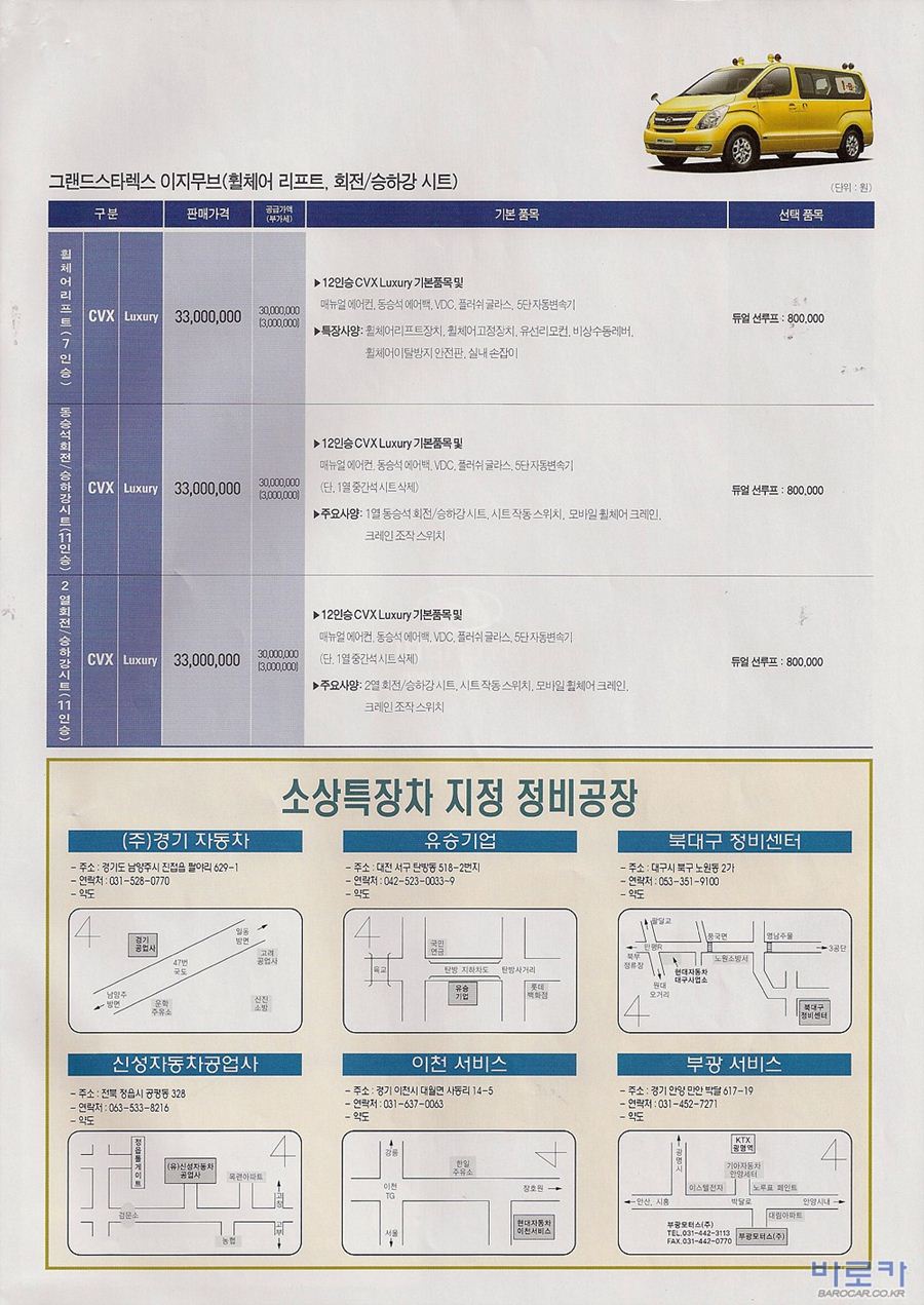 2008년 7월 그랜드스타렉스 특장차(리무진포함) 신차가격표