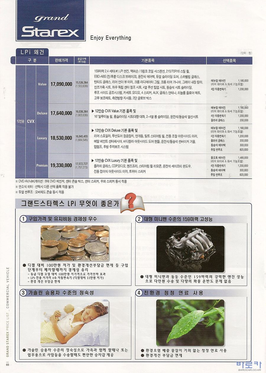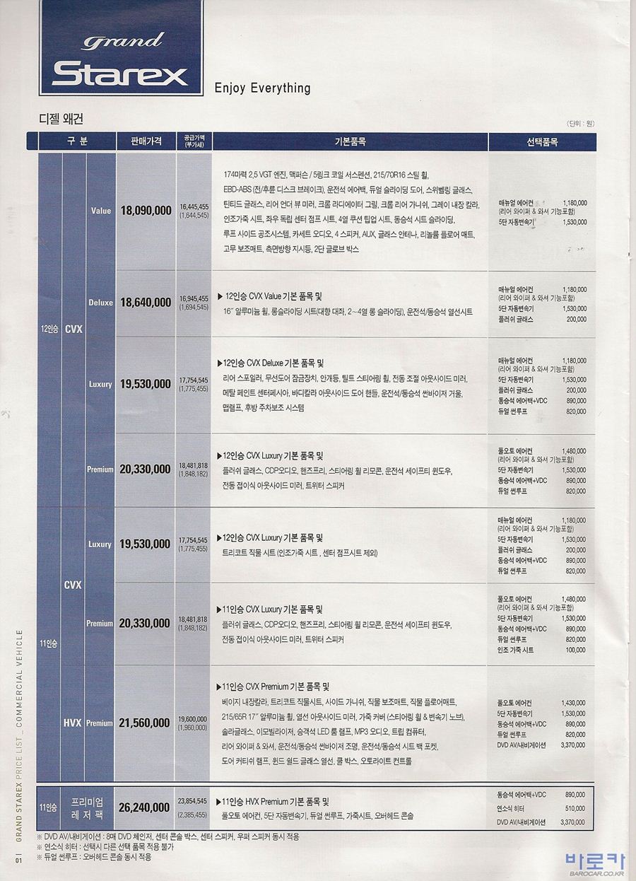2008년 7월 그랜드스타렉스 특장차(리무진포함) 신차가격표
