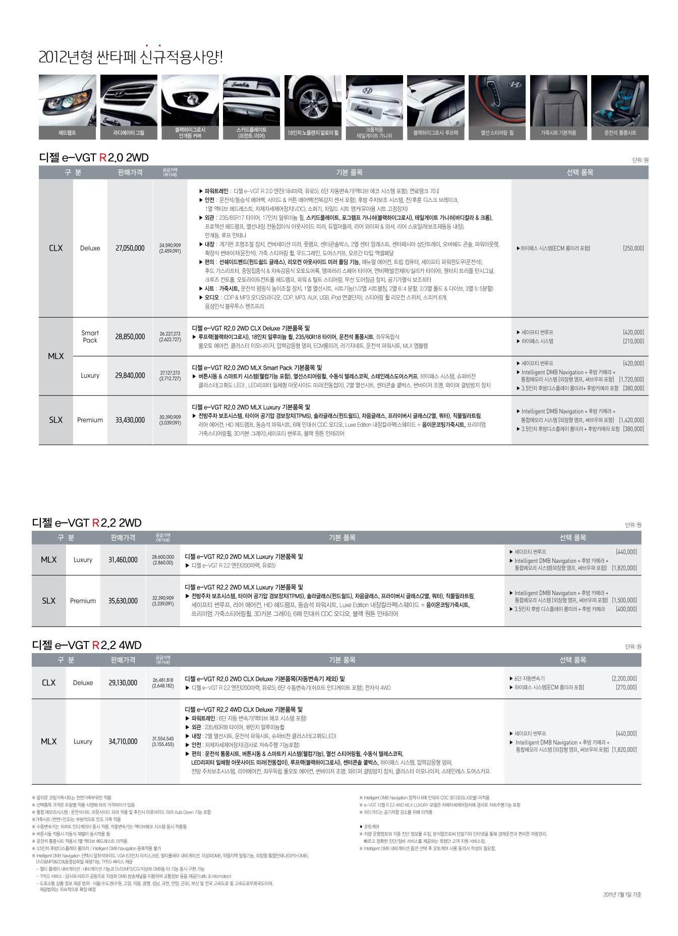 2012년 3월 싼타페 더 스타일 신차가격표 (2.2모델 FTA 개별소비세 인하 반영)