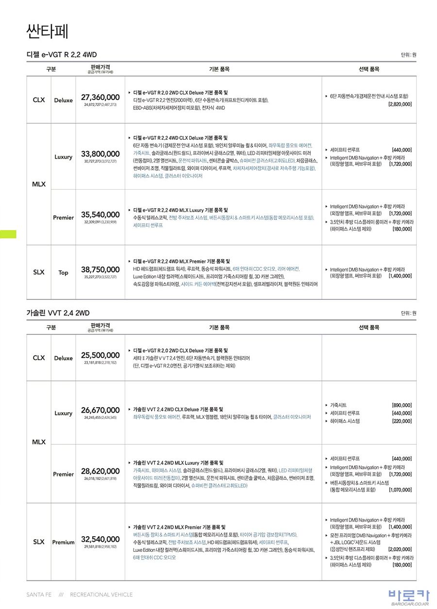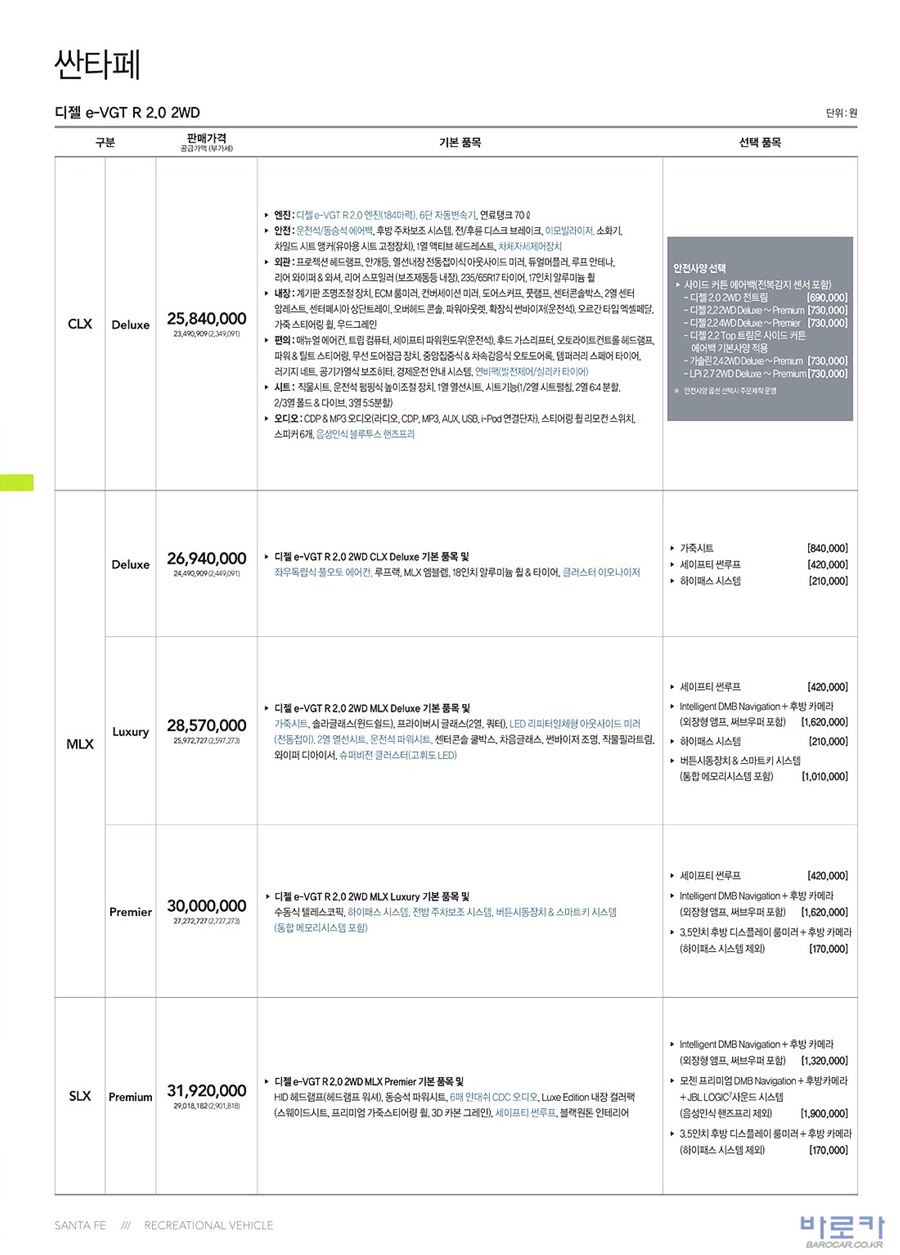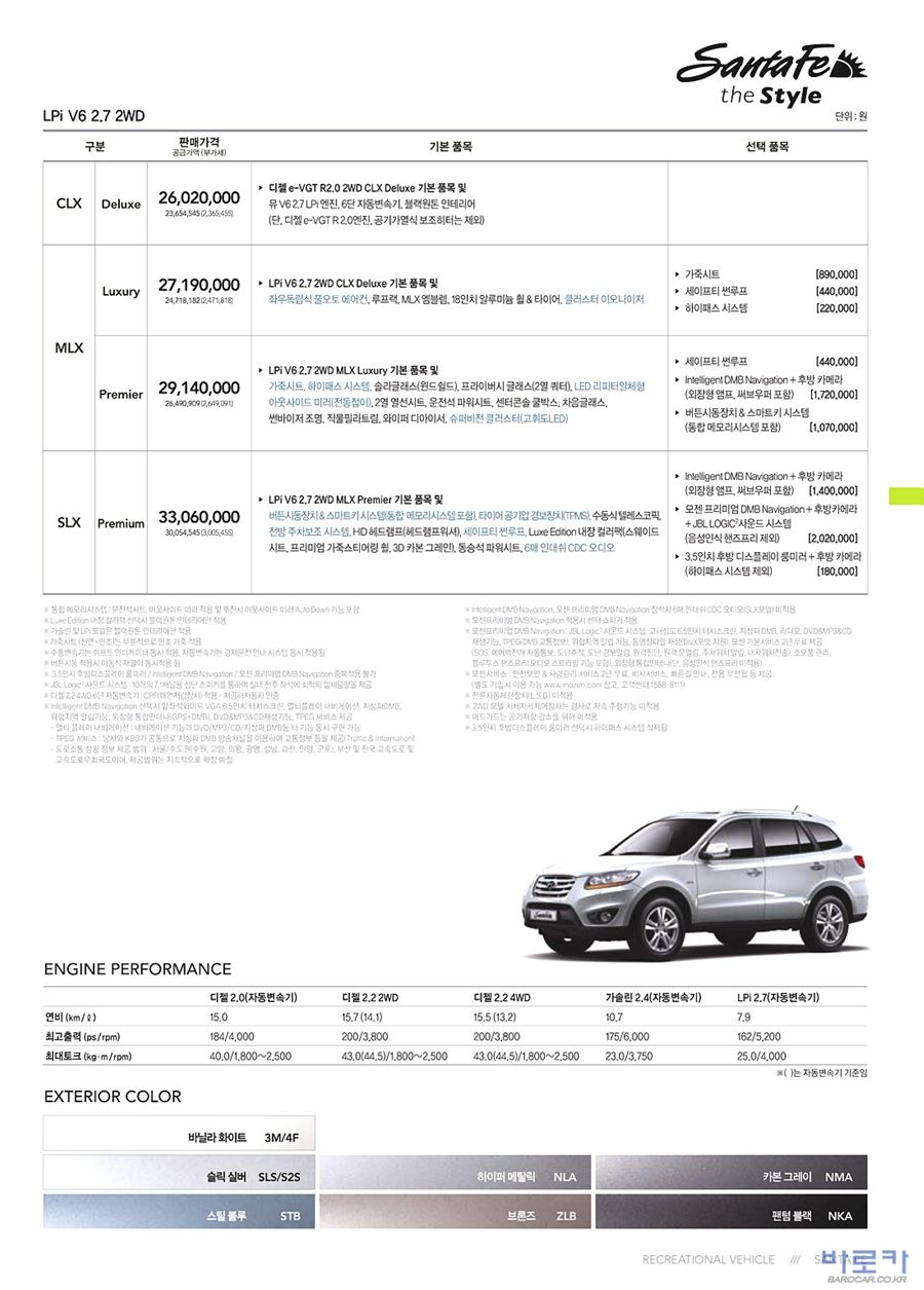 2010년 2월 싼타페CM(더 스타일) 신차가격표