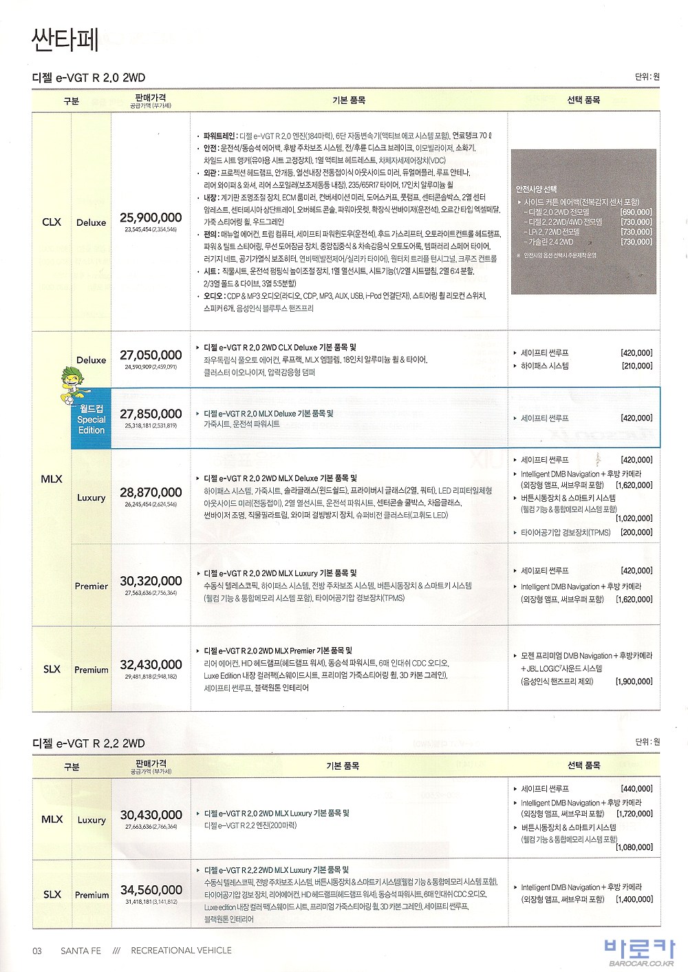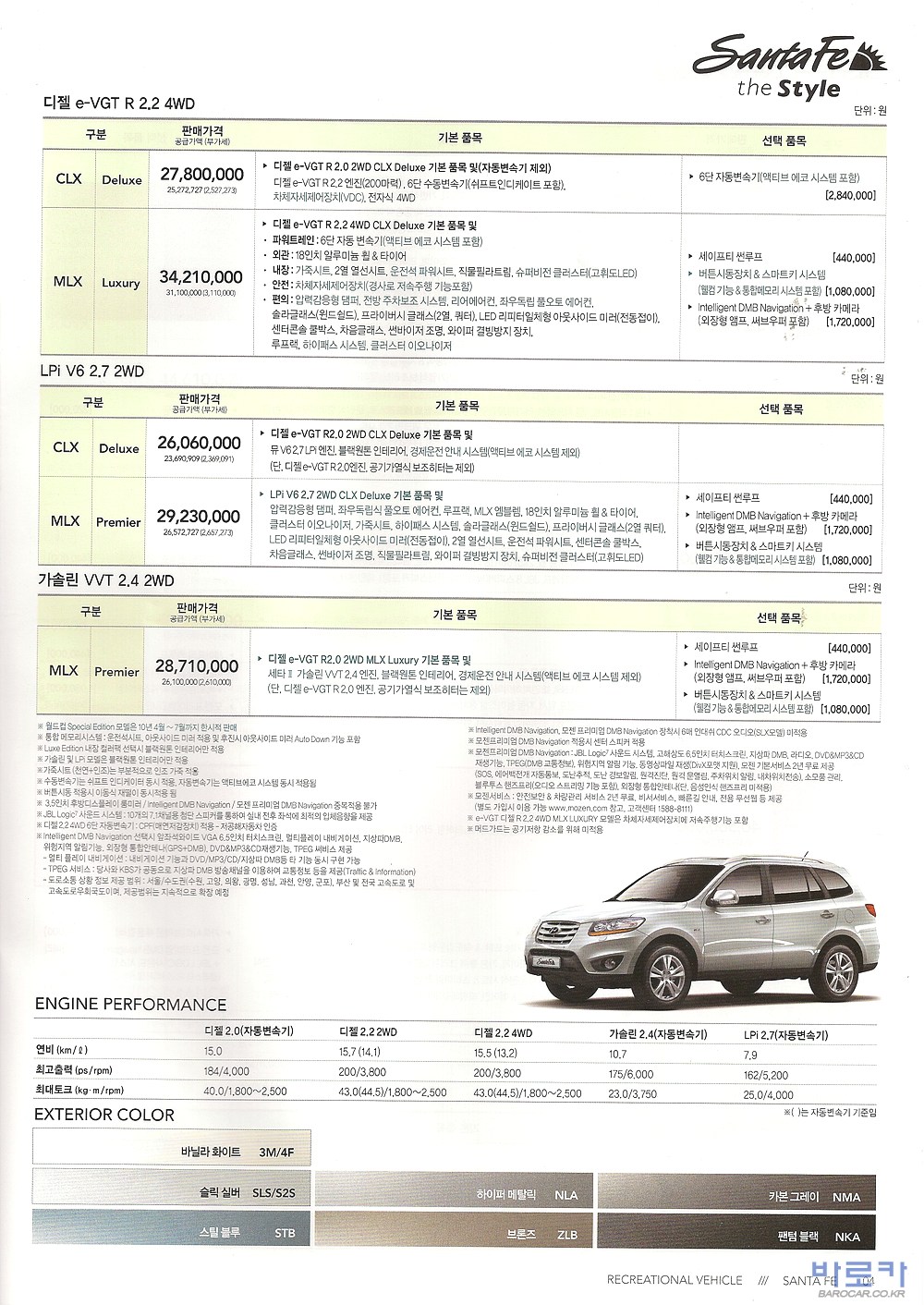 2010년 2월 싼타페CM(더 스타일) 신차가격표