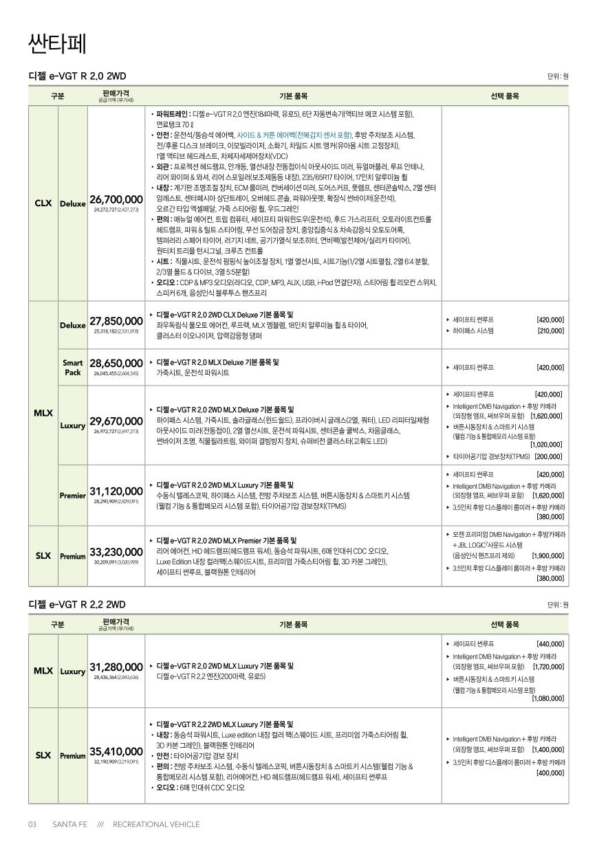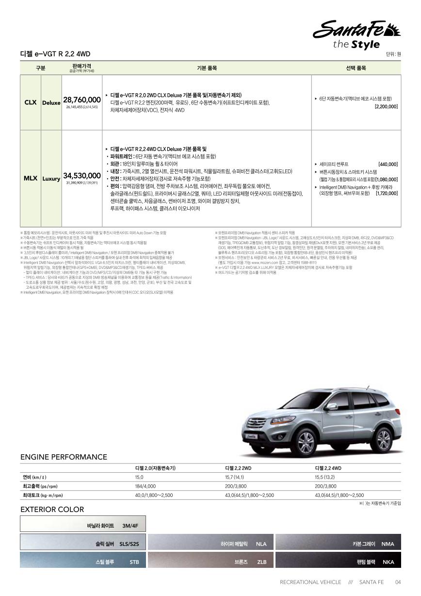 2010년 6월 싼타페CM (더 스타일) 신차가격표