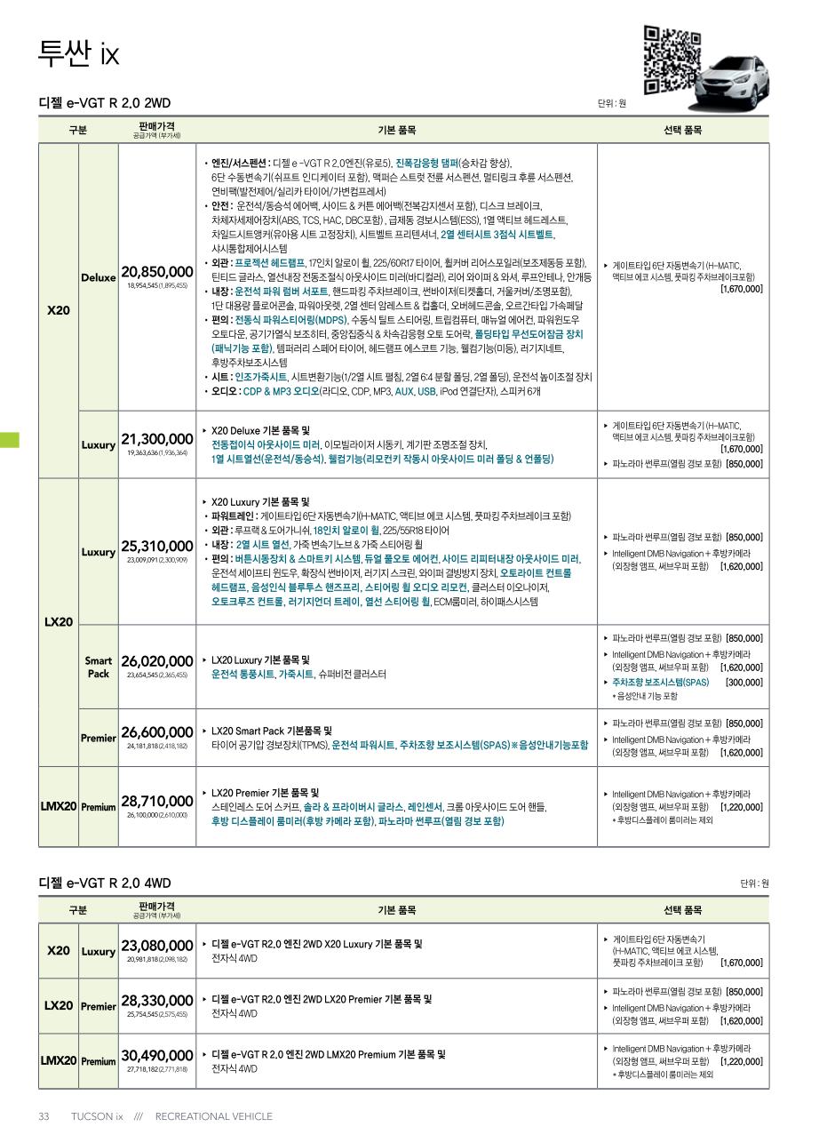 2011년 9월 투싼iX 신차가격표