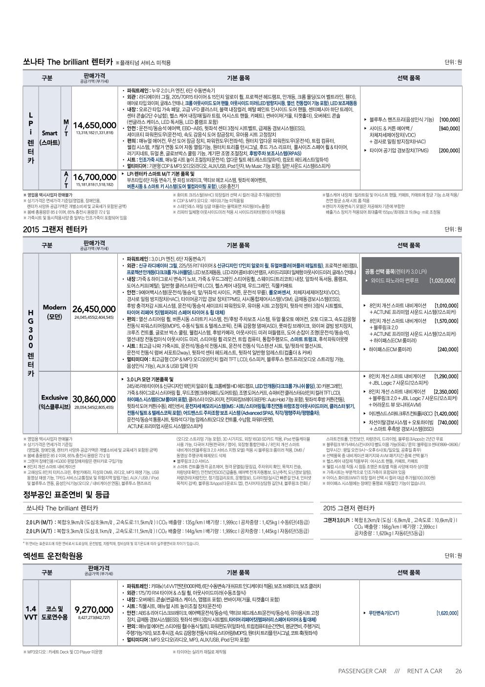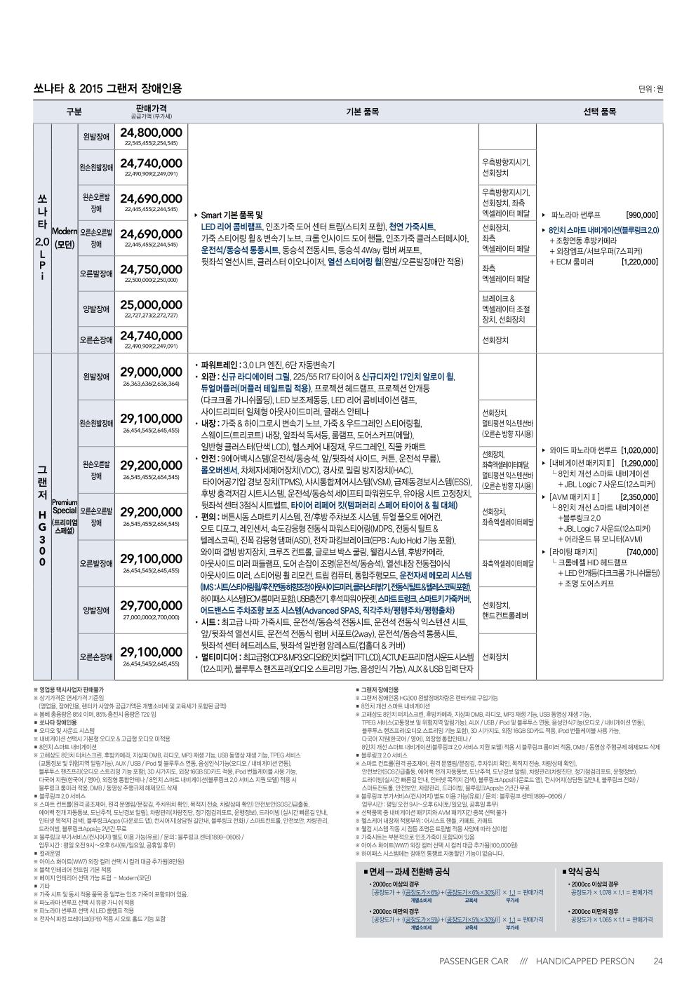 ※ 본 가격표의 모든 저작권은 해당 차량 제조사에 있습니다.