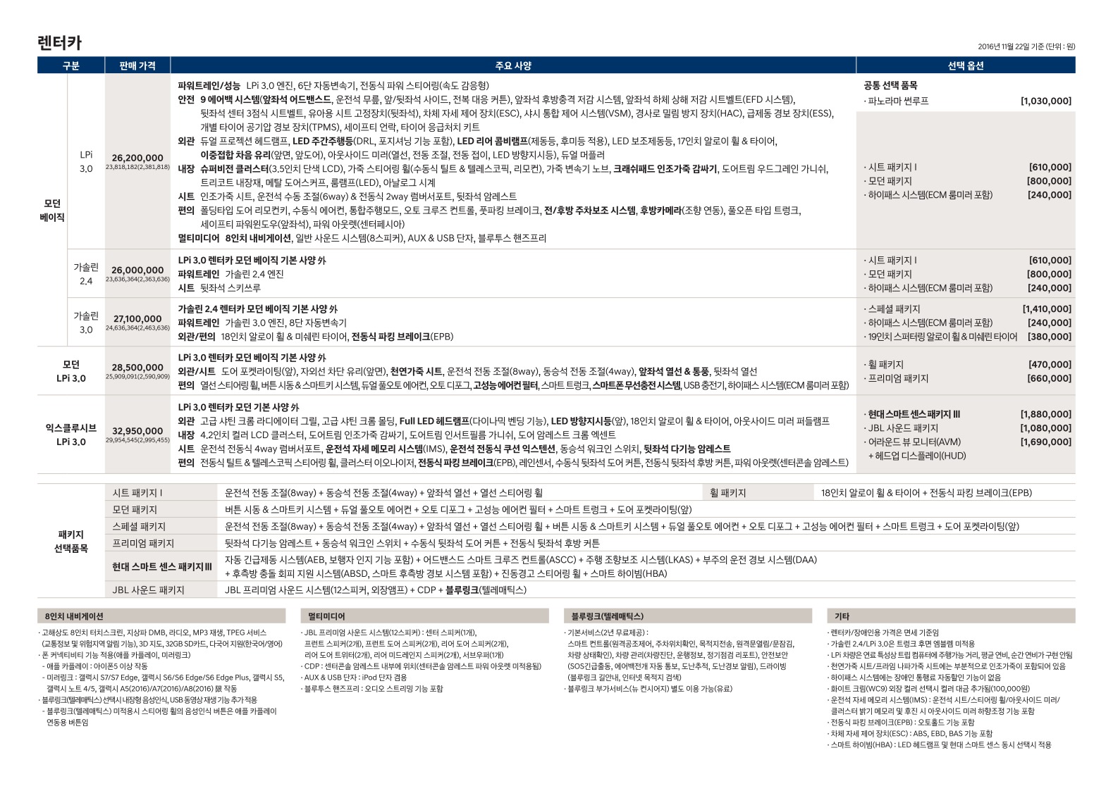 ※ 본 가격표의 모든 저작권은 해당 차량 제조사에 있습니다.