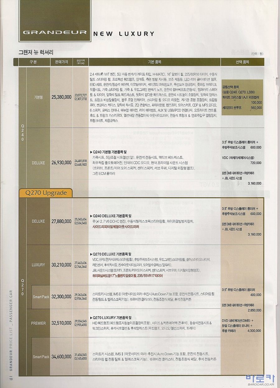 2008년 7월 그랜져TG 신차가격표 (LPG포함)