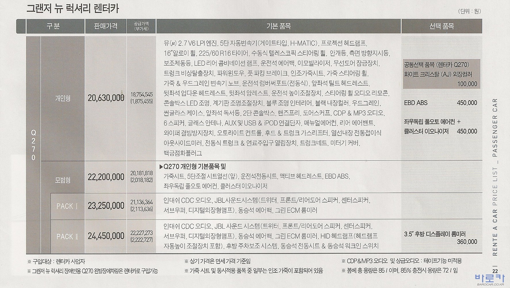 ※ 본 가격표의 모든 저작권은 해당 차량 제조사에 있습니다.